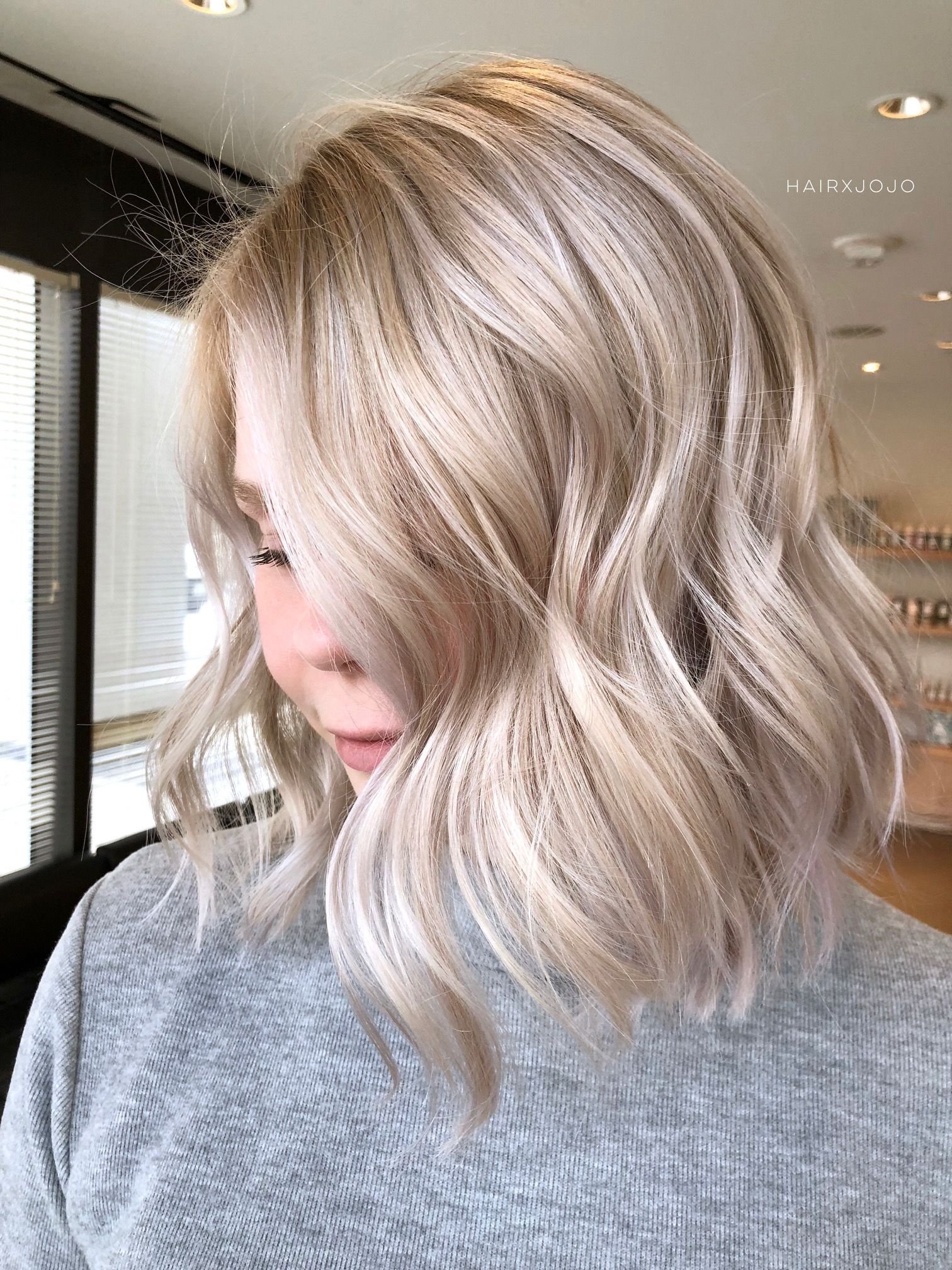 Жемчужно пепельный блонд каре