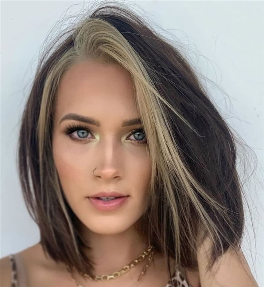 Блонл с чёрными прядями