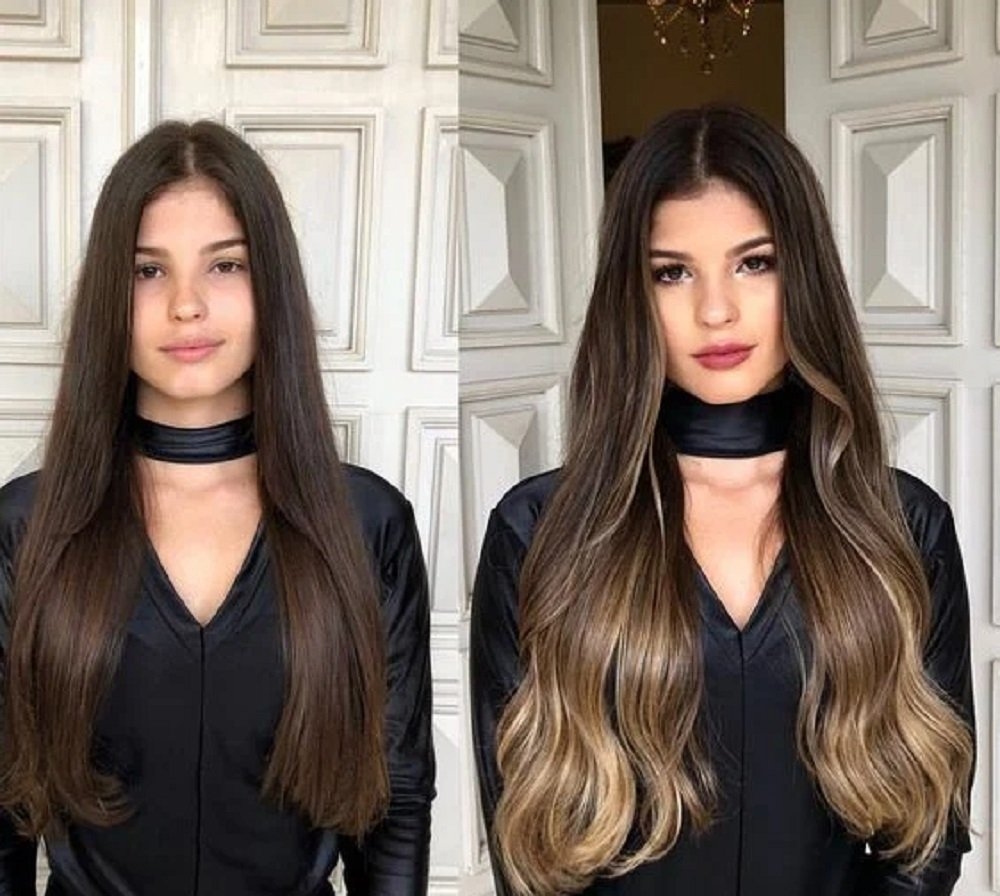 Контуринг на длинные прямые волосы