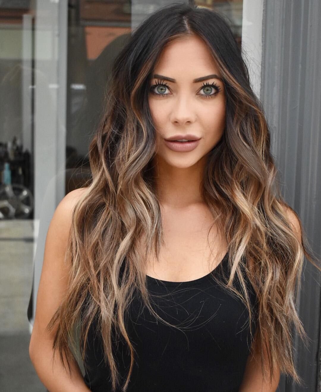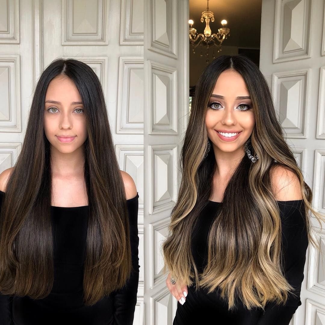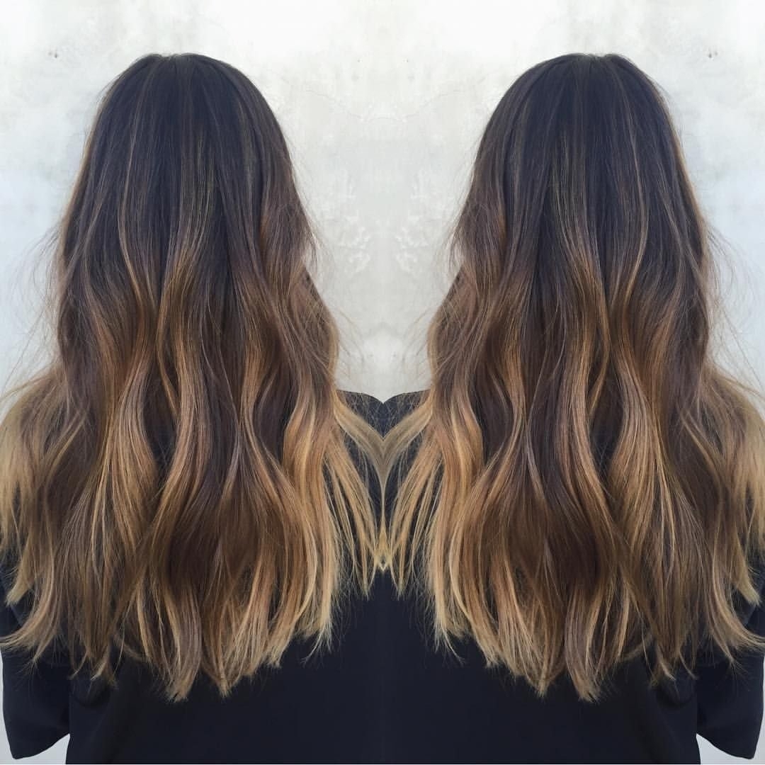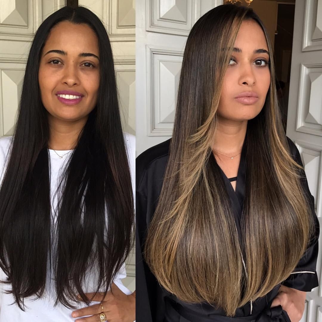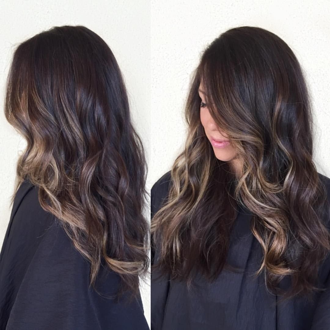Балаяж на темные волосы длинные прямые