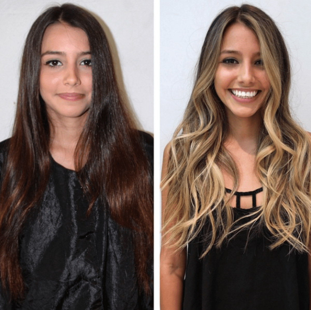 Светлый балаяж на темные прямые волосы