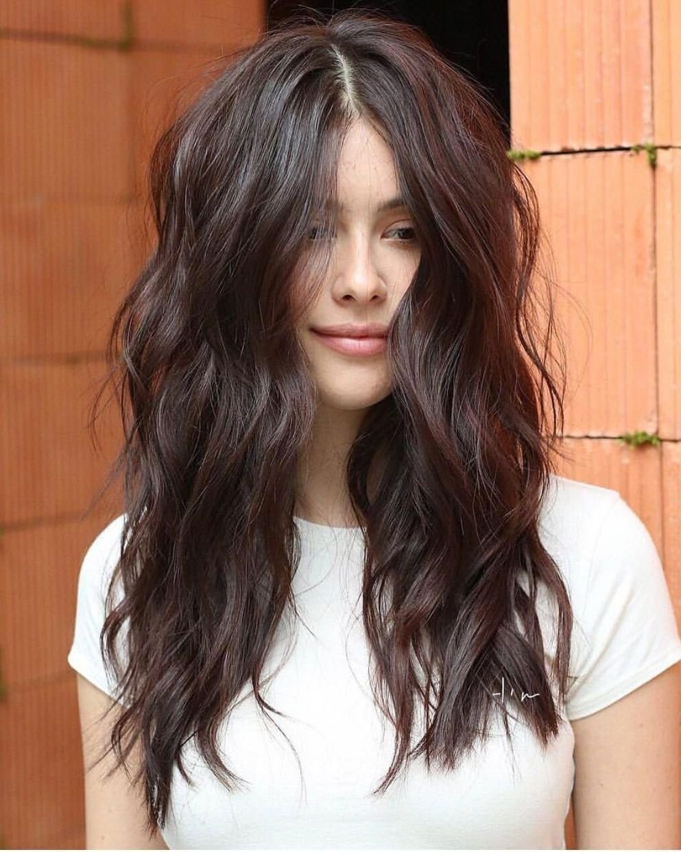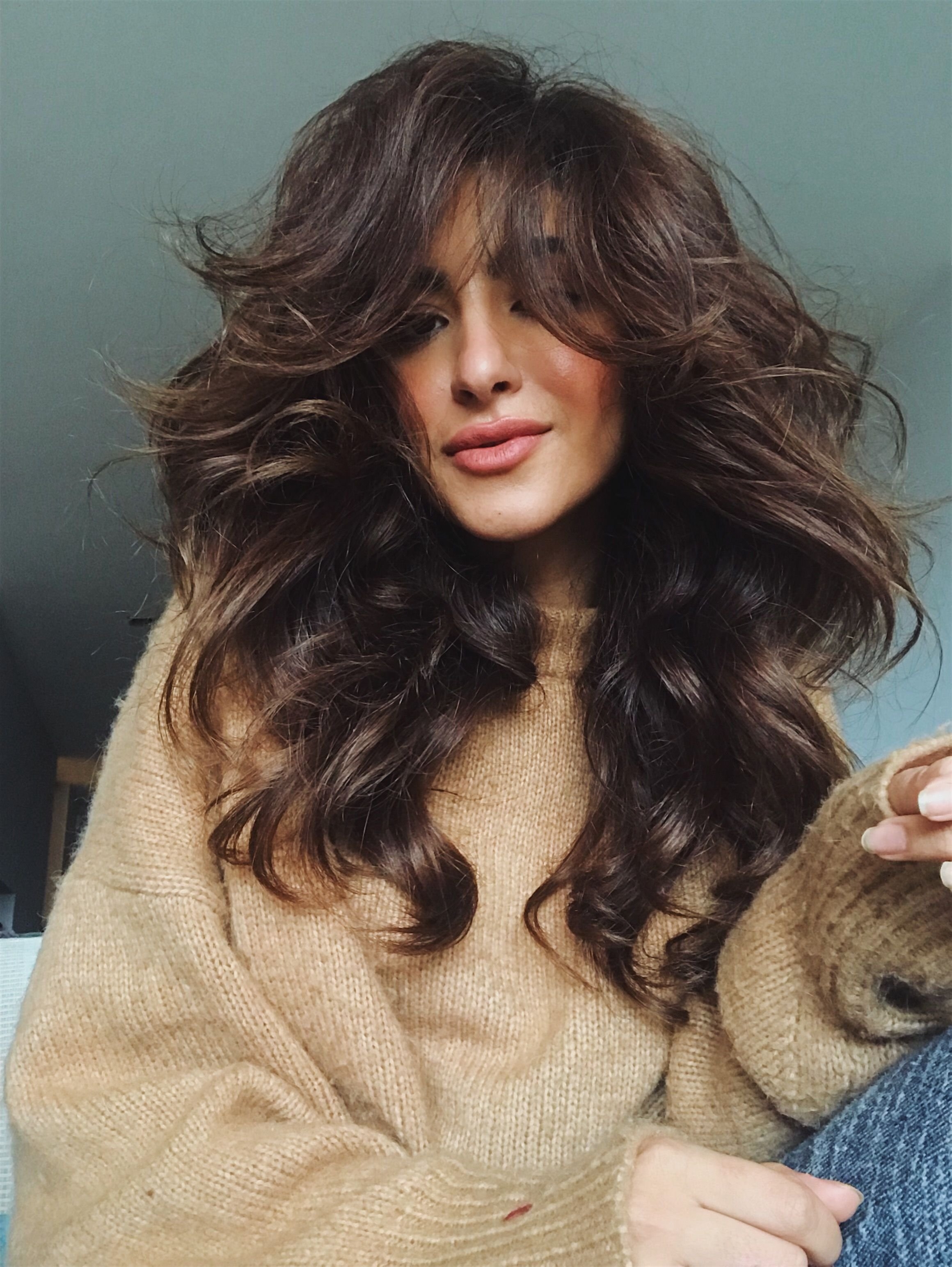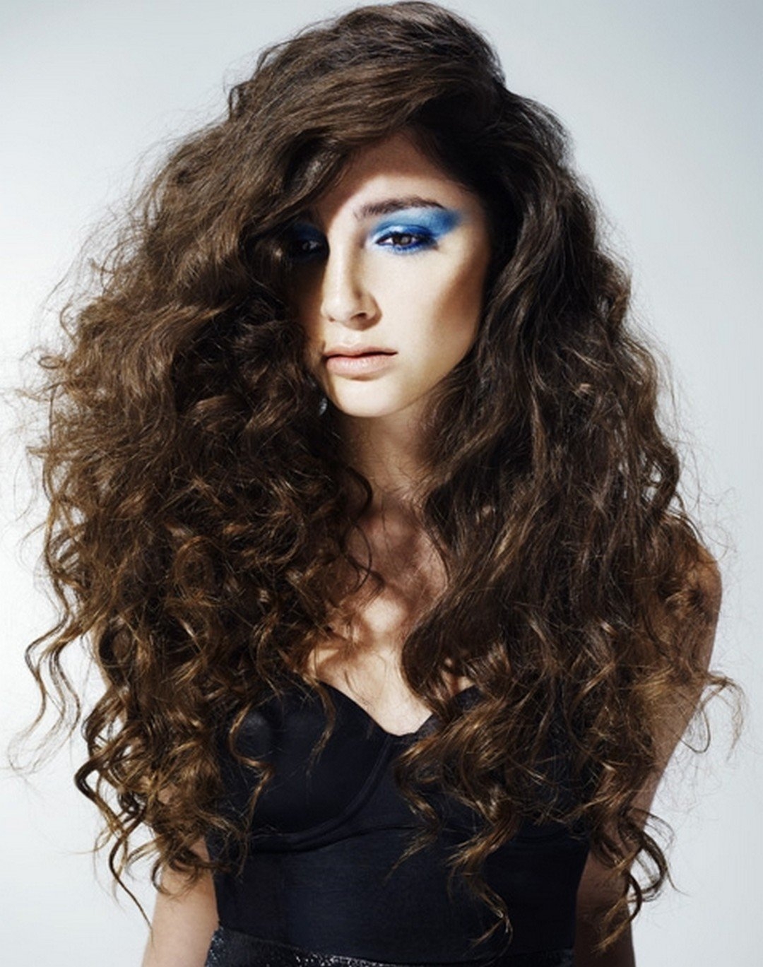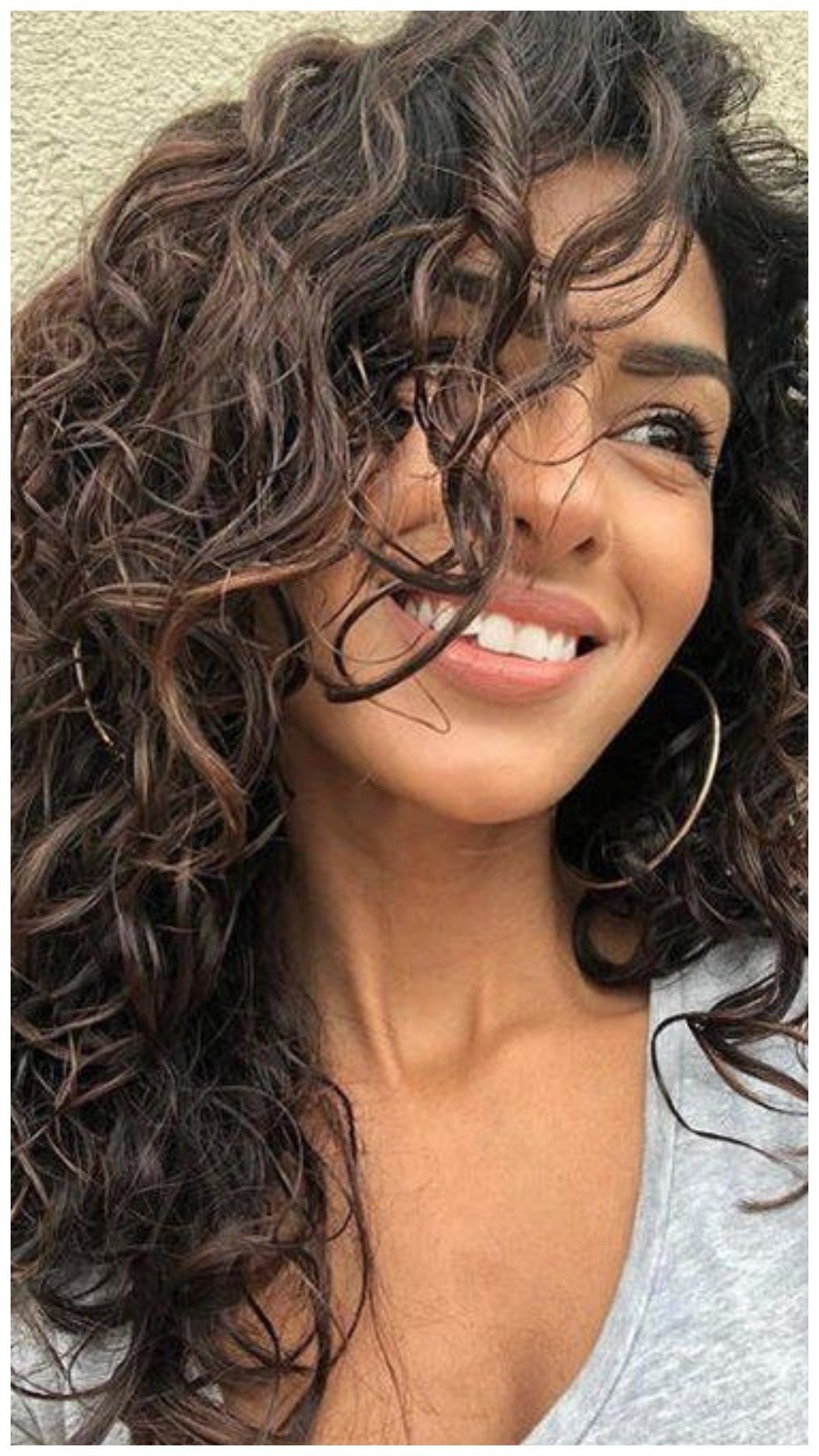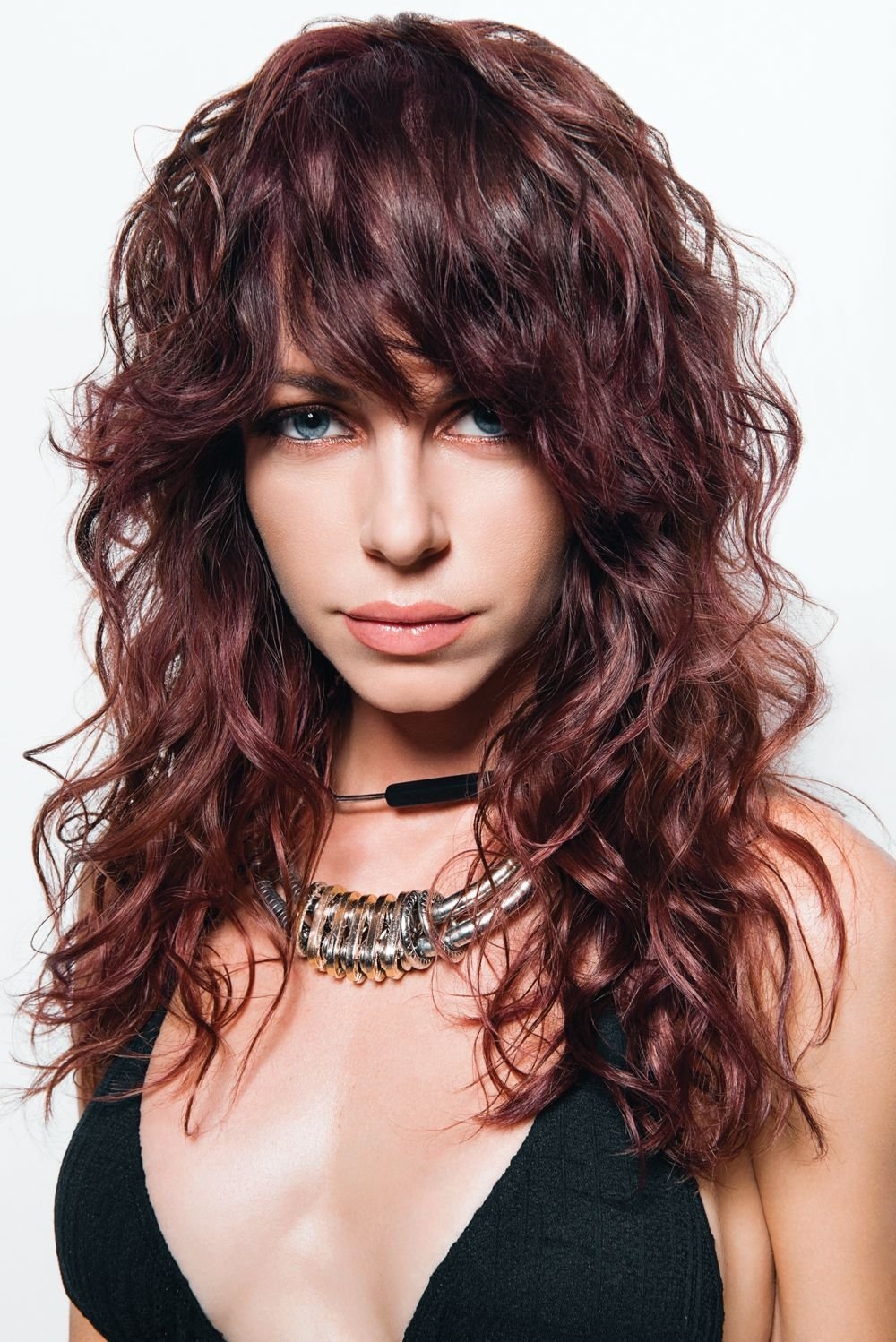 Стрижка Каскад на длинные вьющиеся волосы с челкой