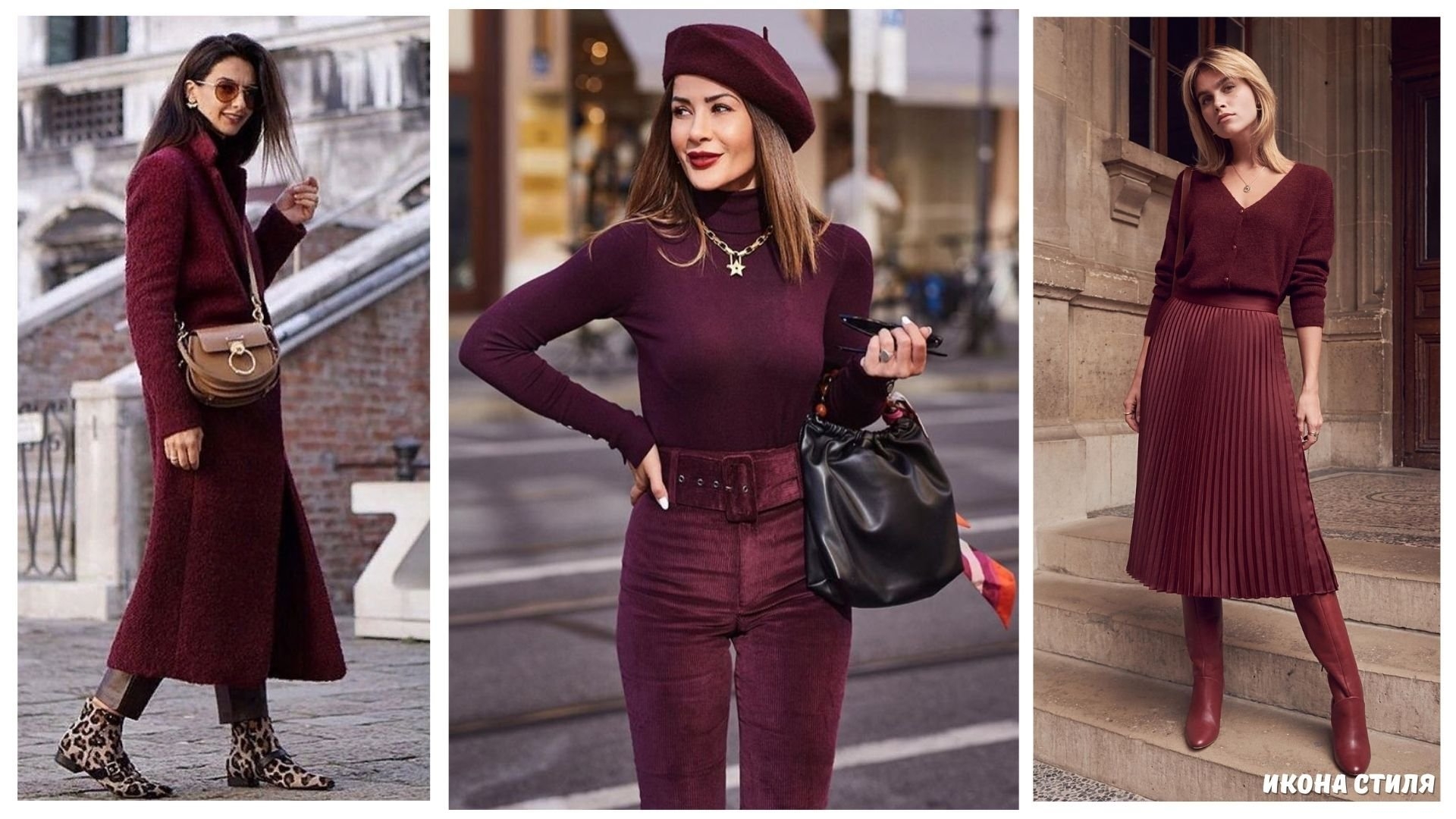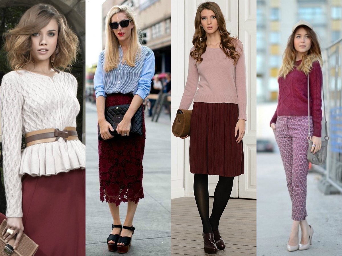Сочетание с бордовым цветом в одежде