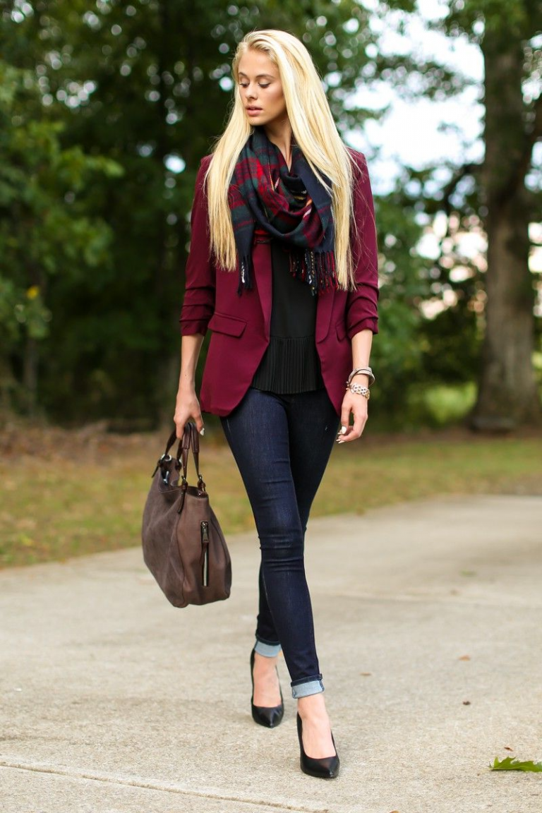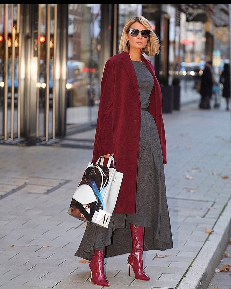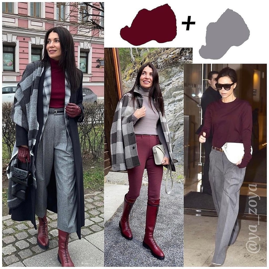 Сочетание серого цвета и бордового в одежде
