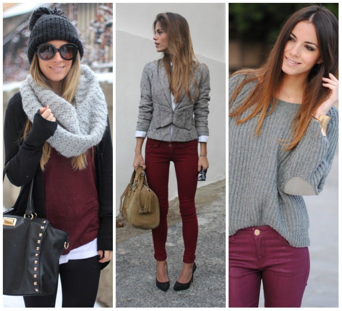 Сочетание серого и бордового в одежде