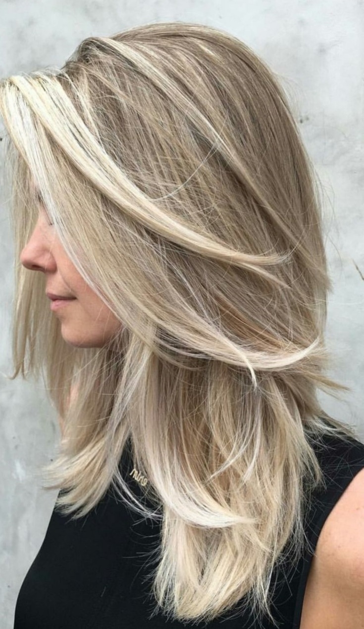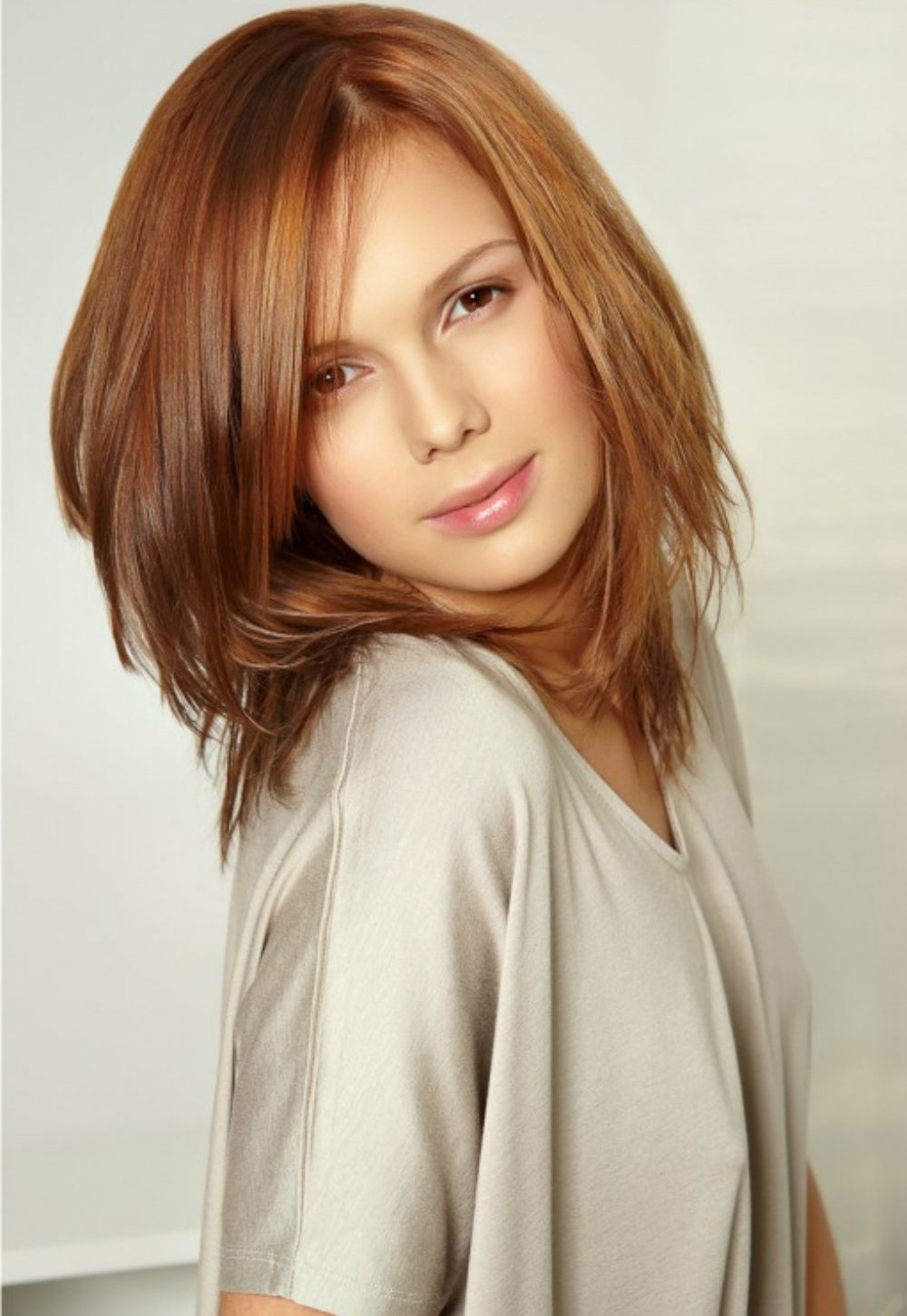 Стрижка Каскад без челки на средние волосы для женщин за 40