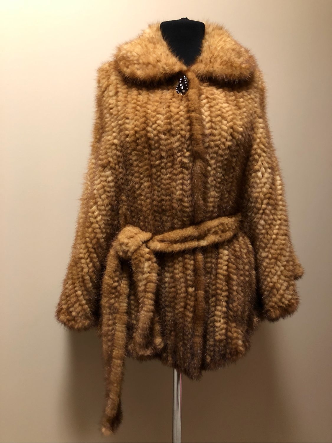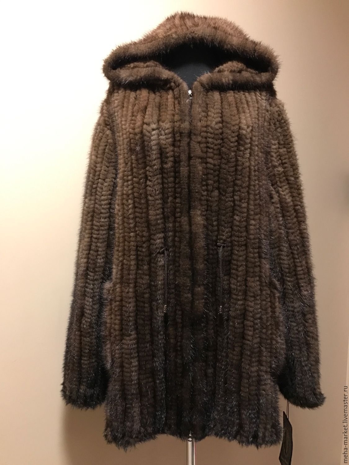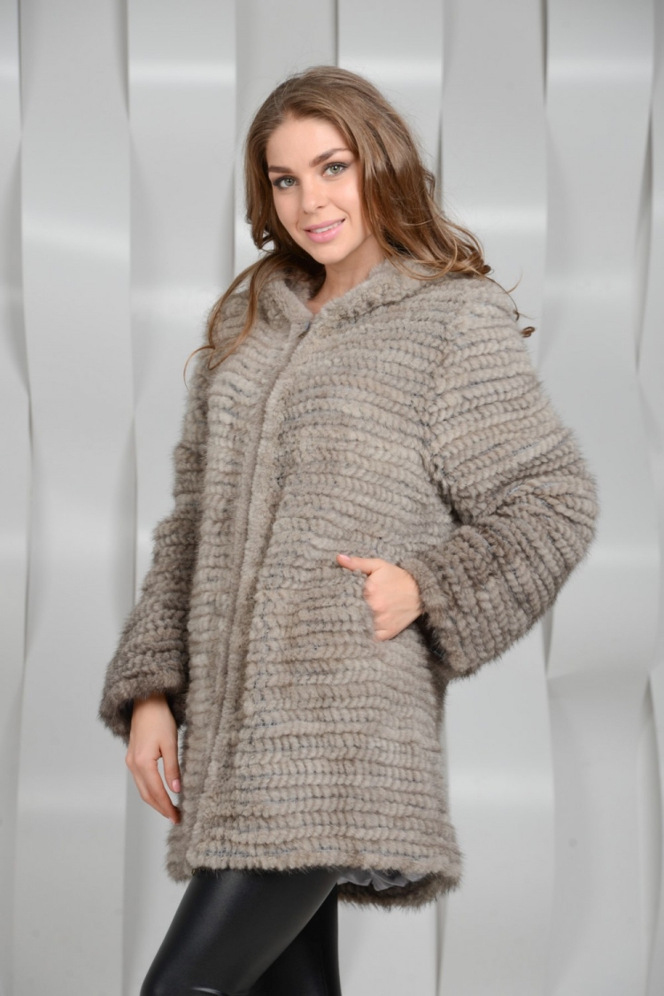 Пальто из вязаной норки