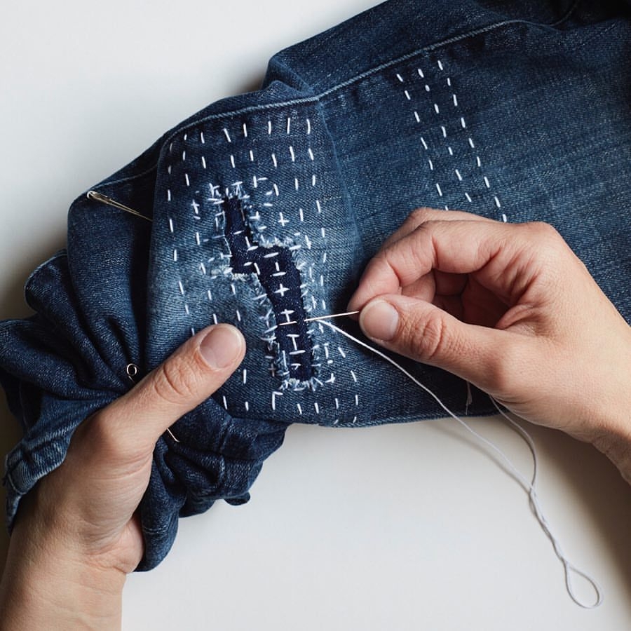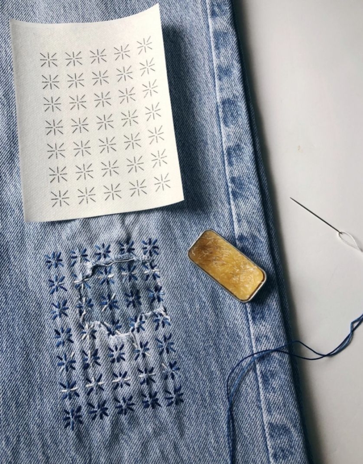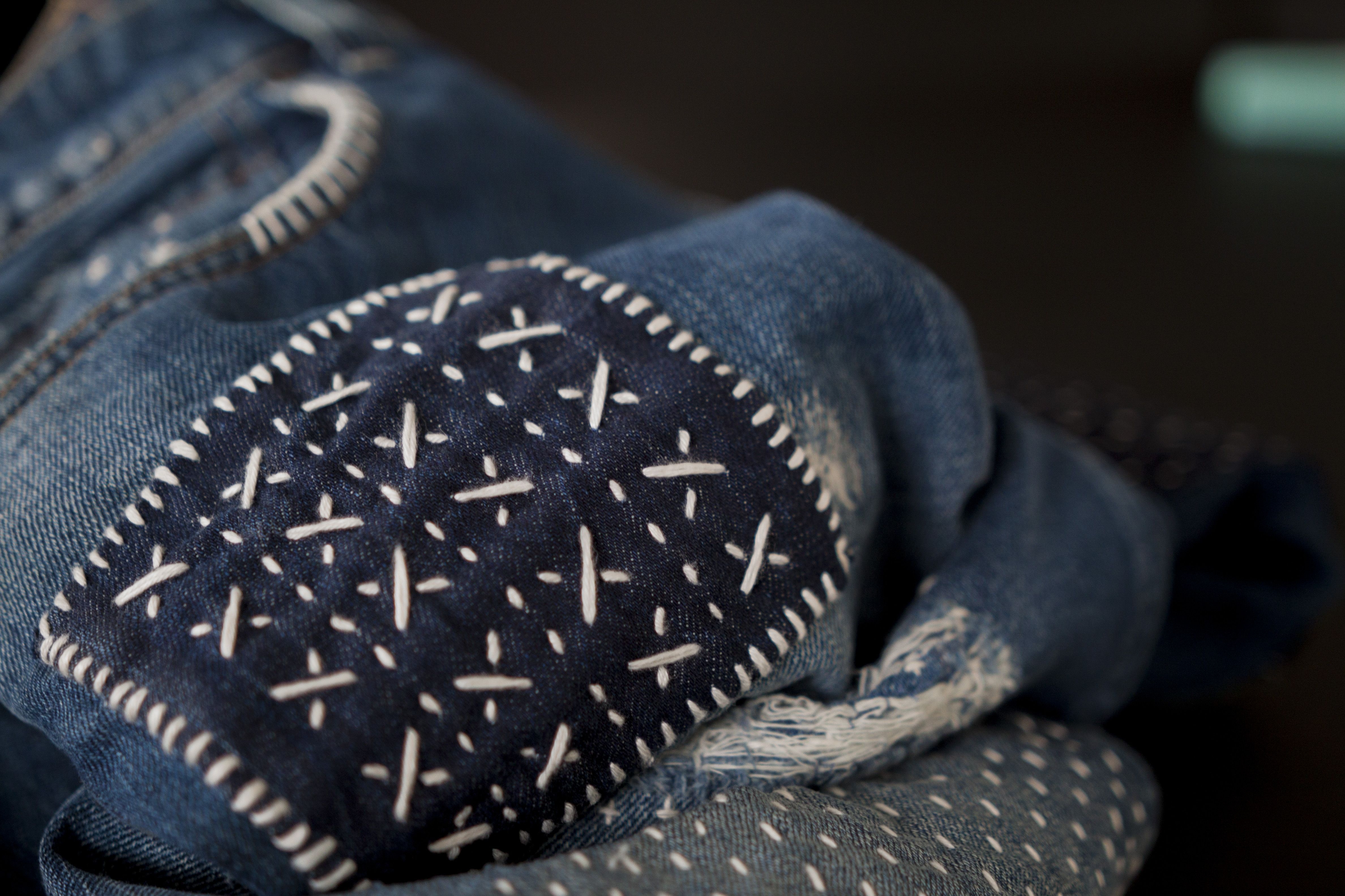 Джинсы в стиле сашико