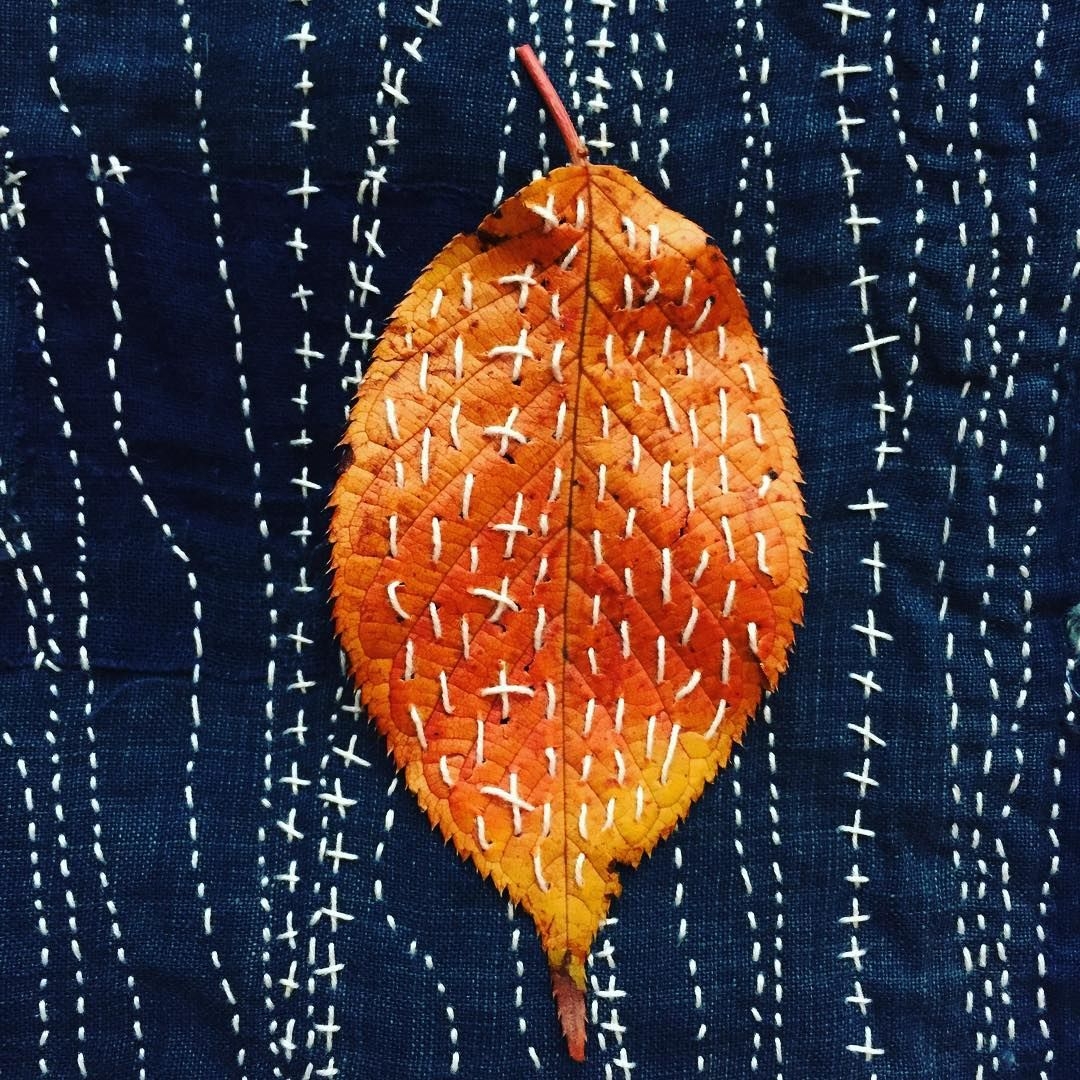 Лист вышитый сашико