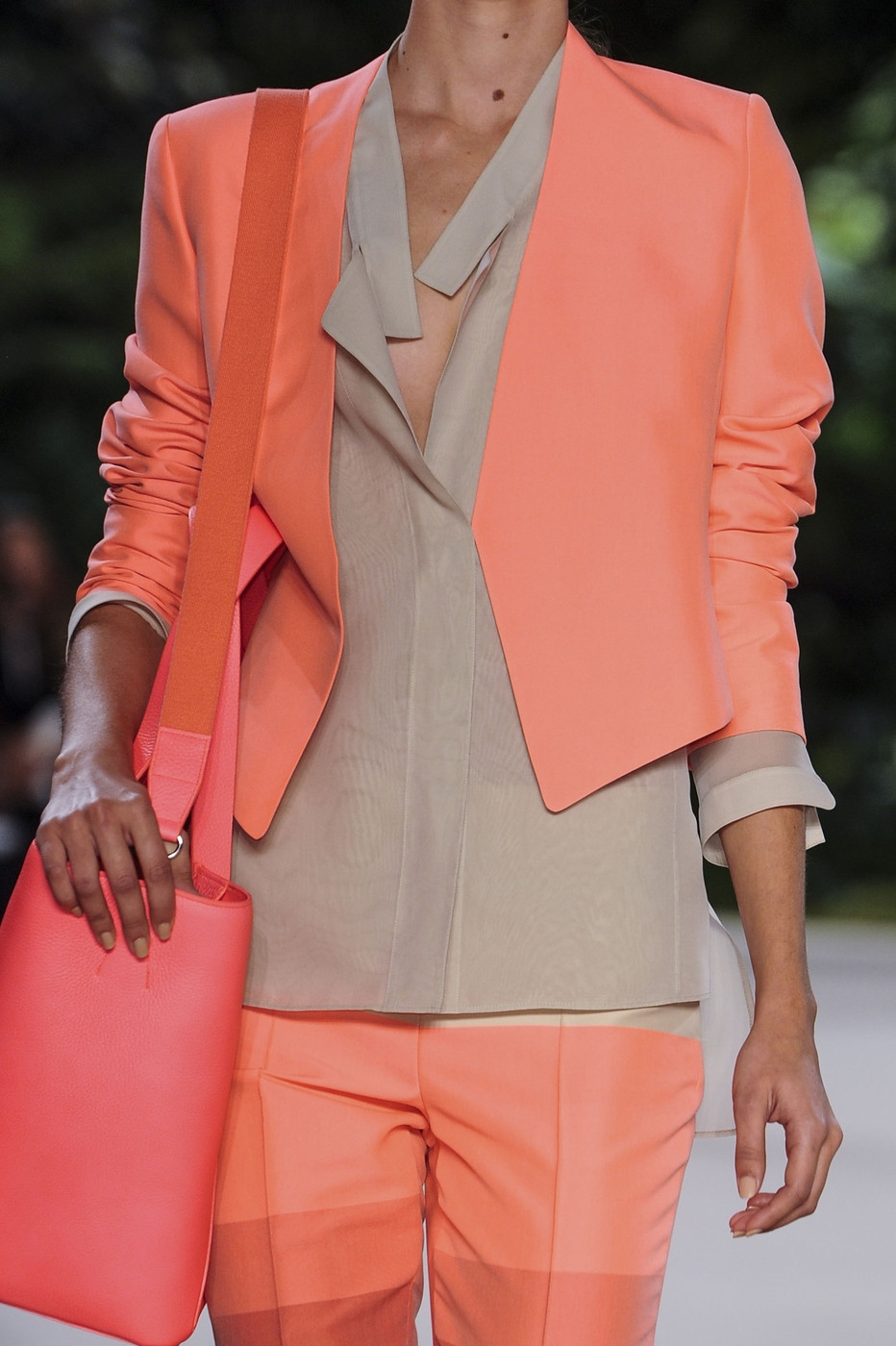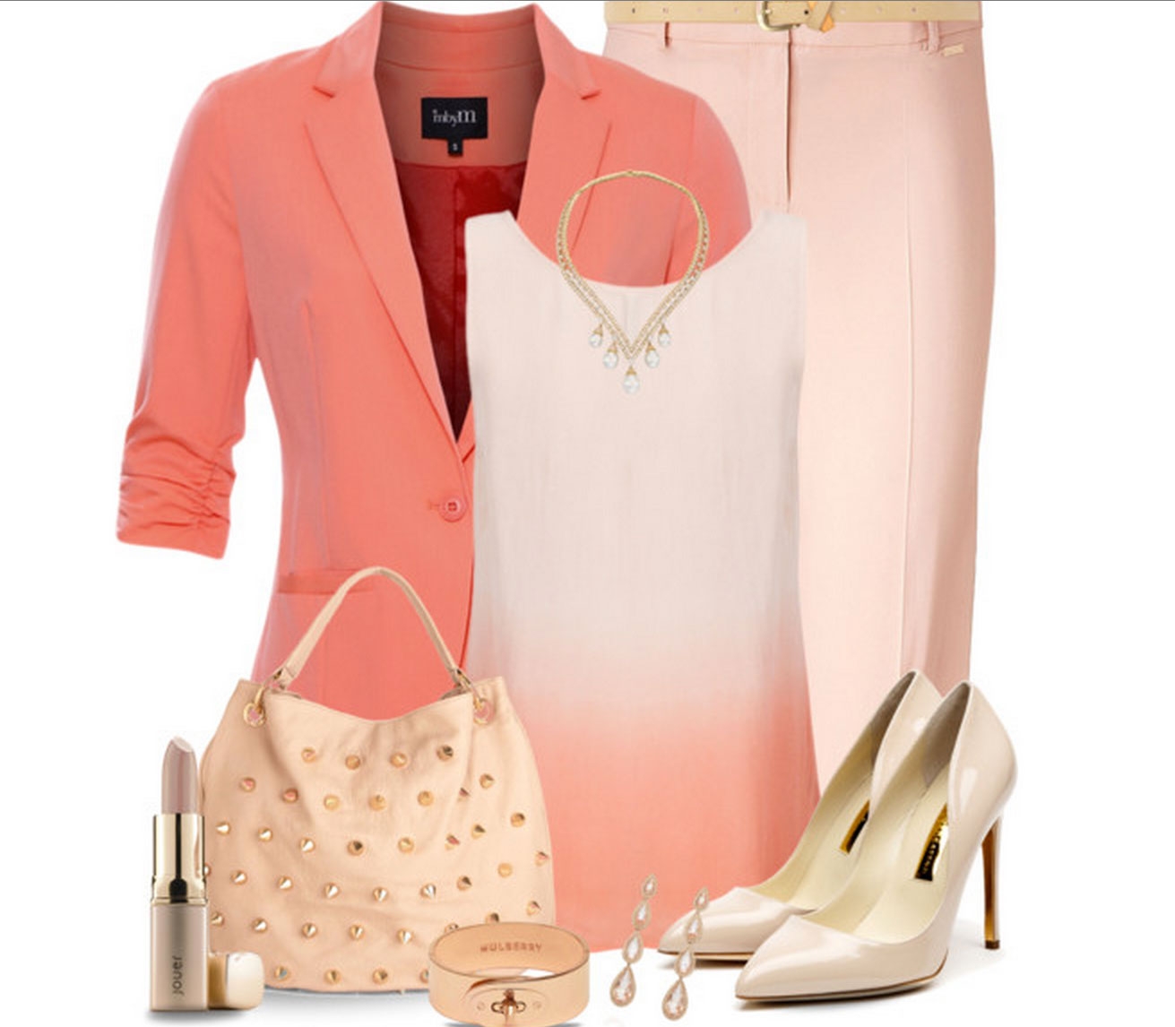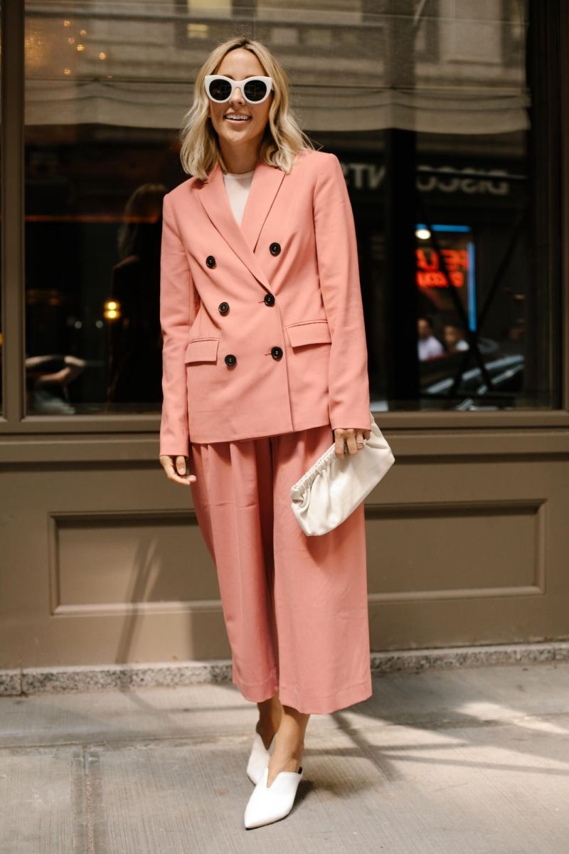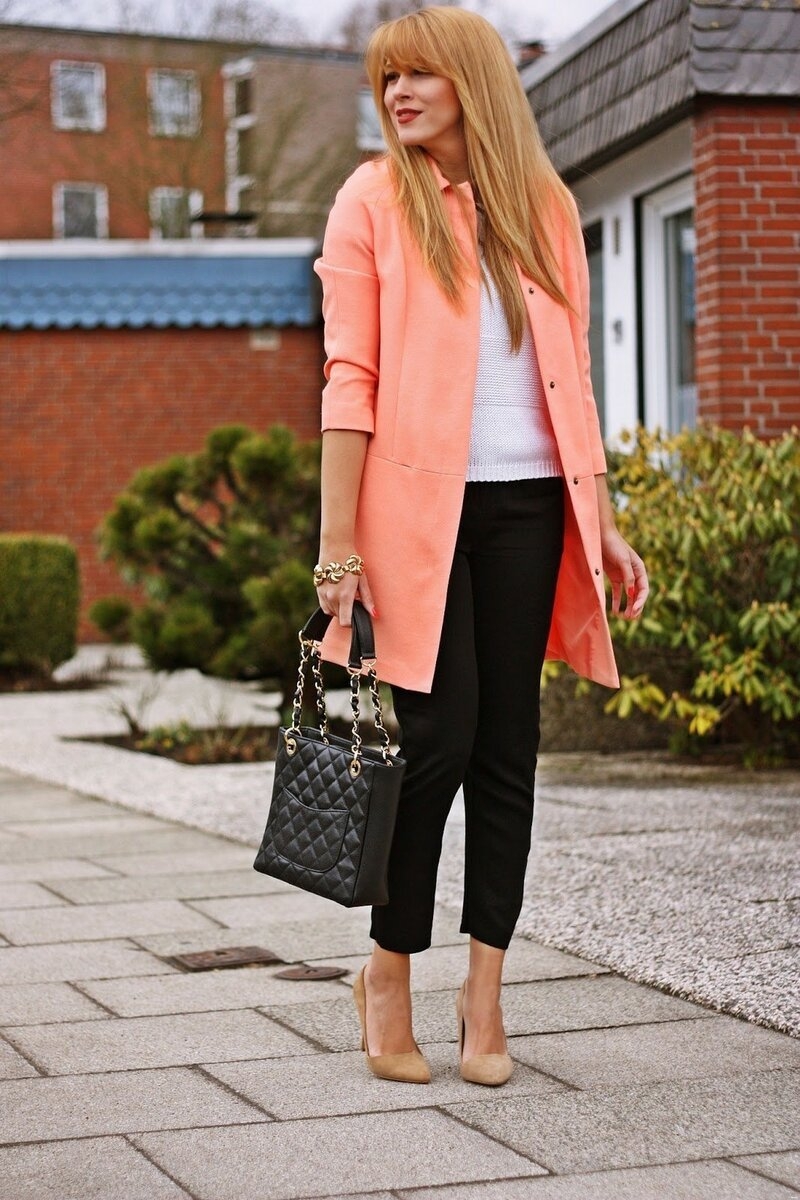 Лук с коралловым пиджаком