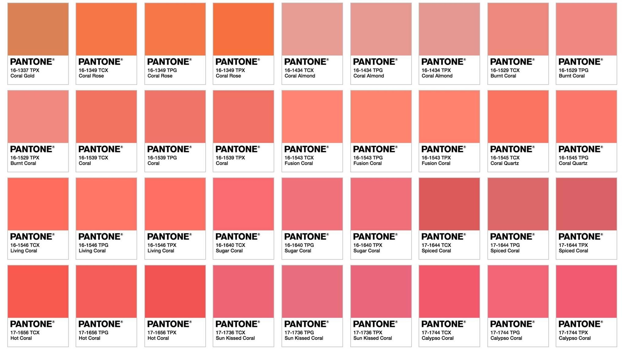 Оттенки кораллового пантон