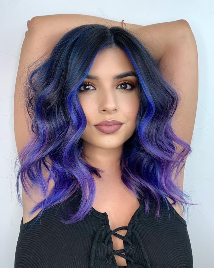 Чёрные волосы с фиолетовыми прядями