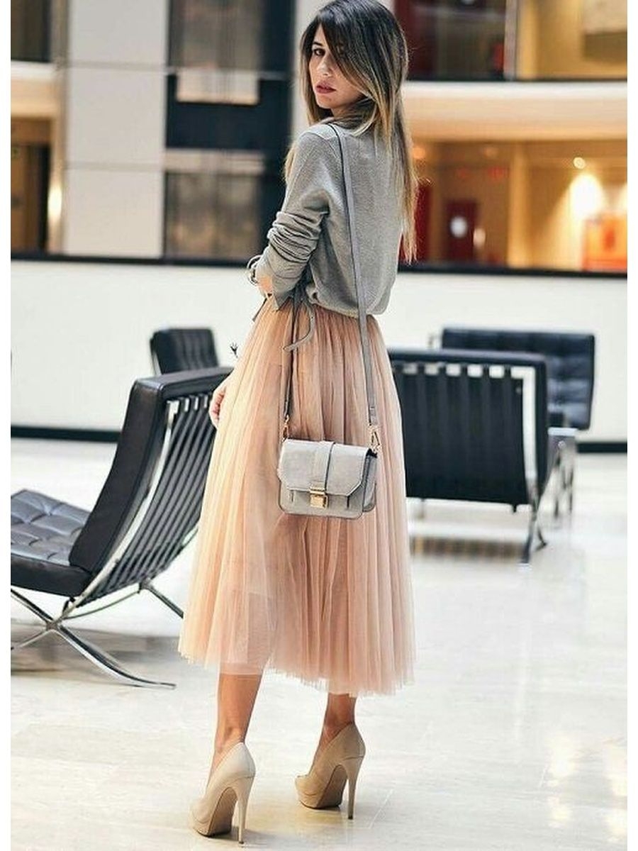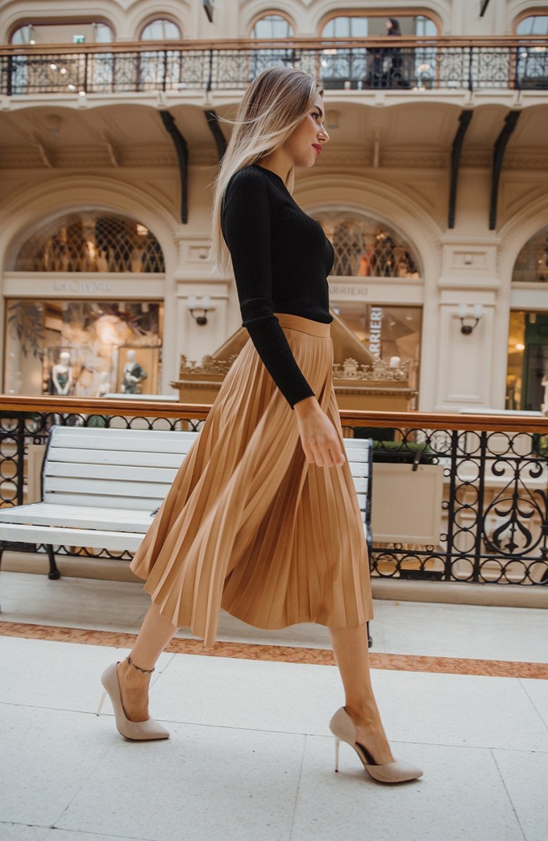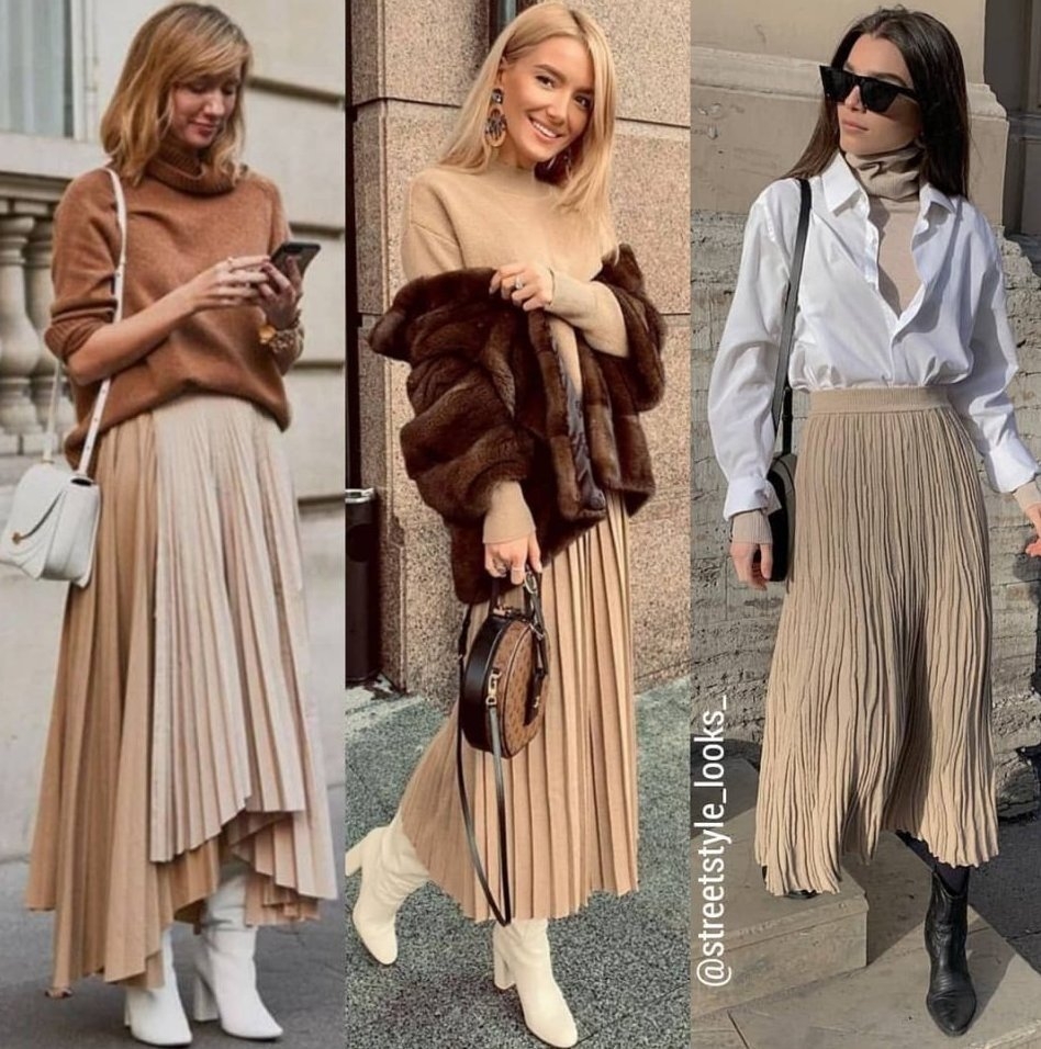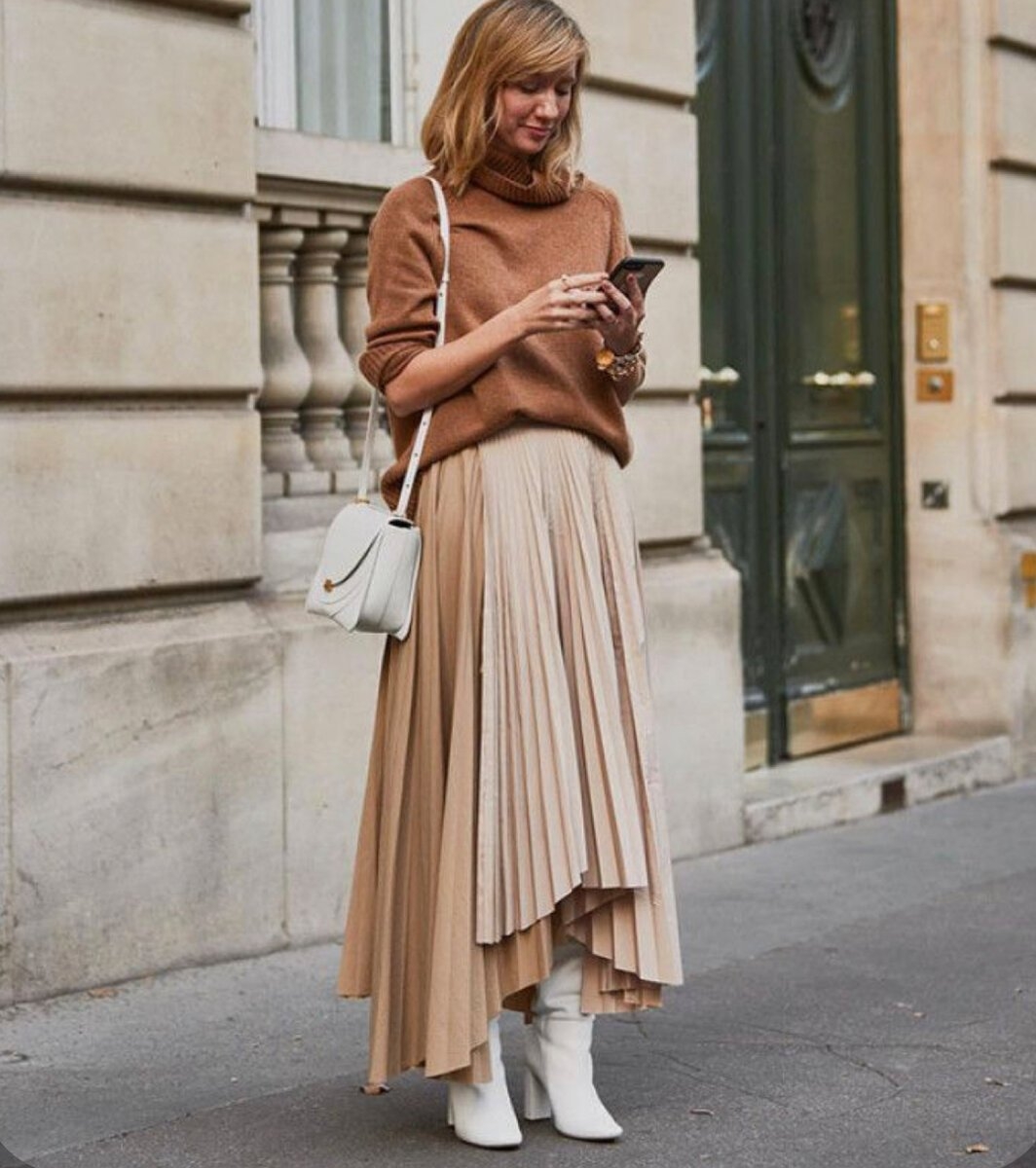 Бежевая юбка плиссе образы
