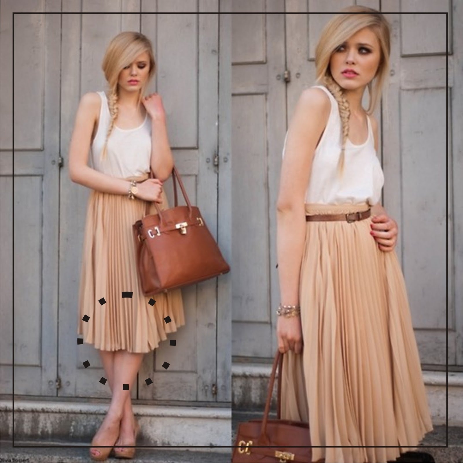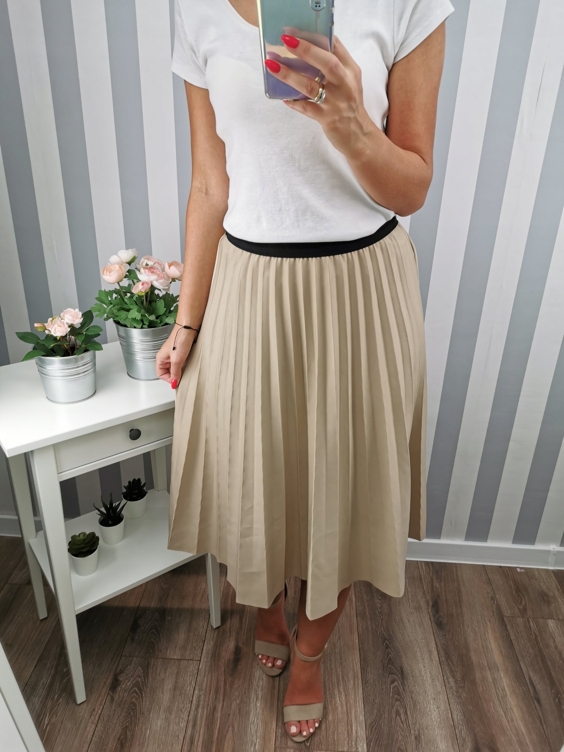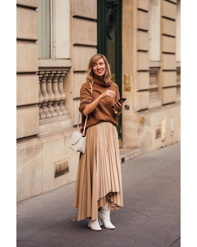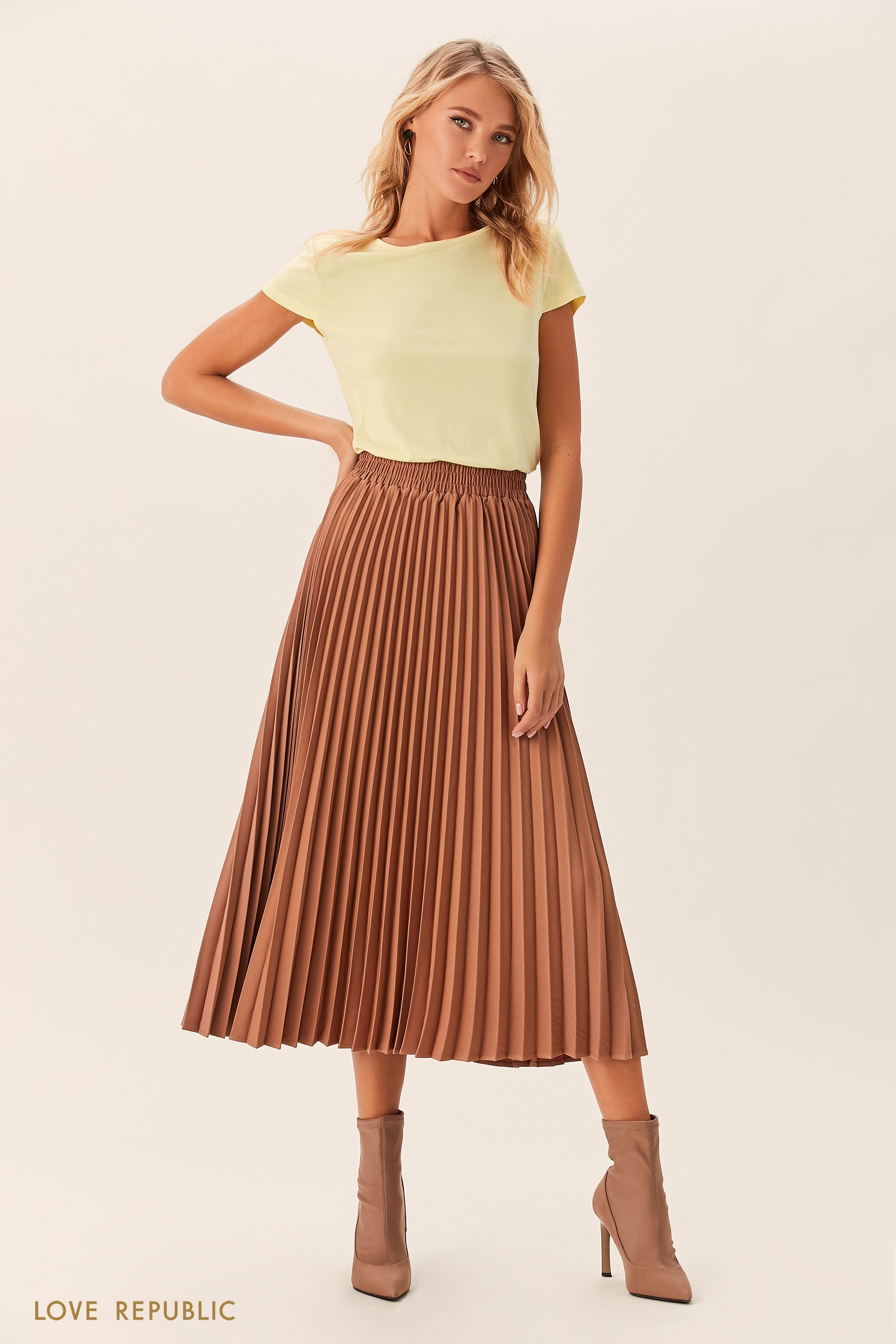 Бежевая юбка плиссе образы