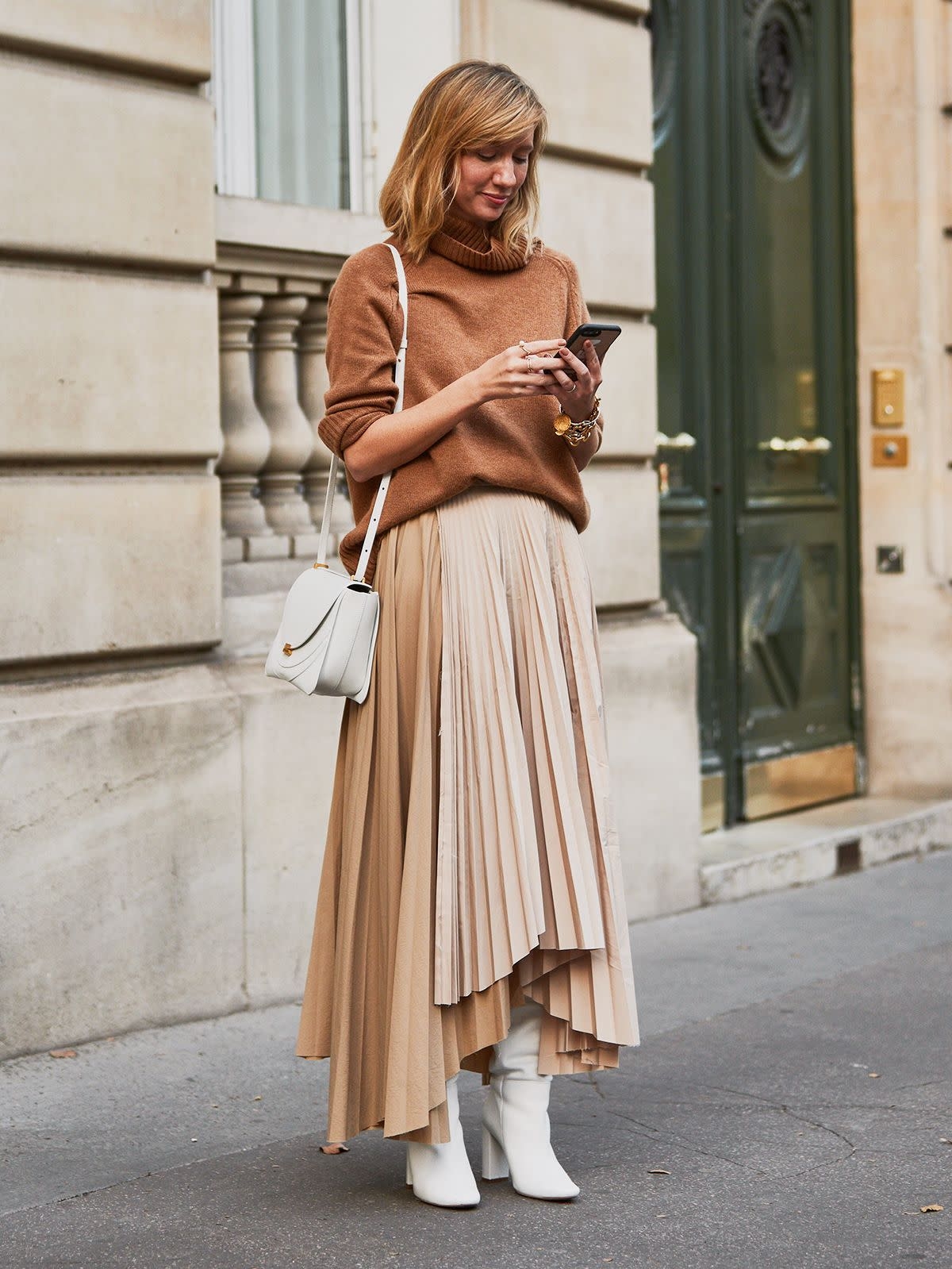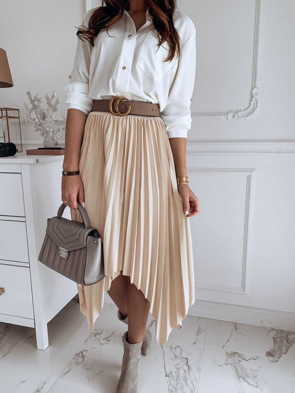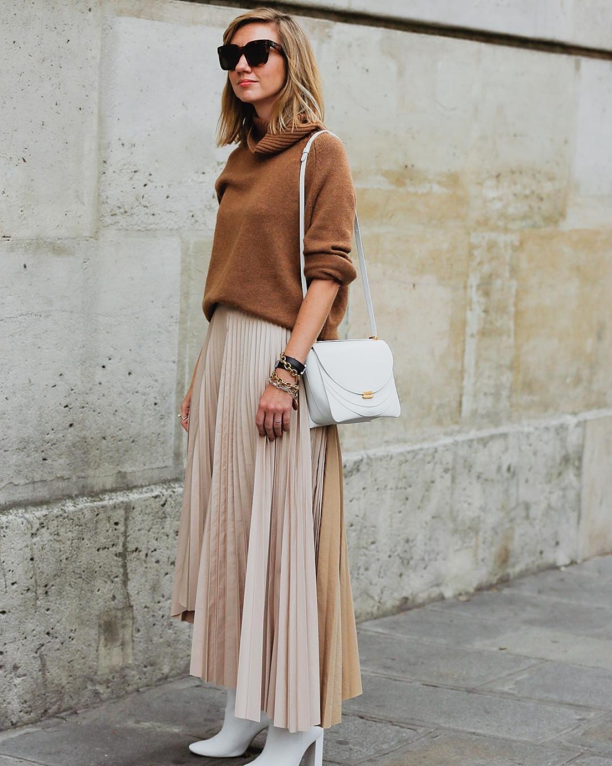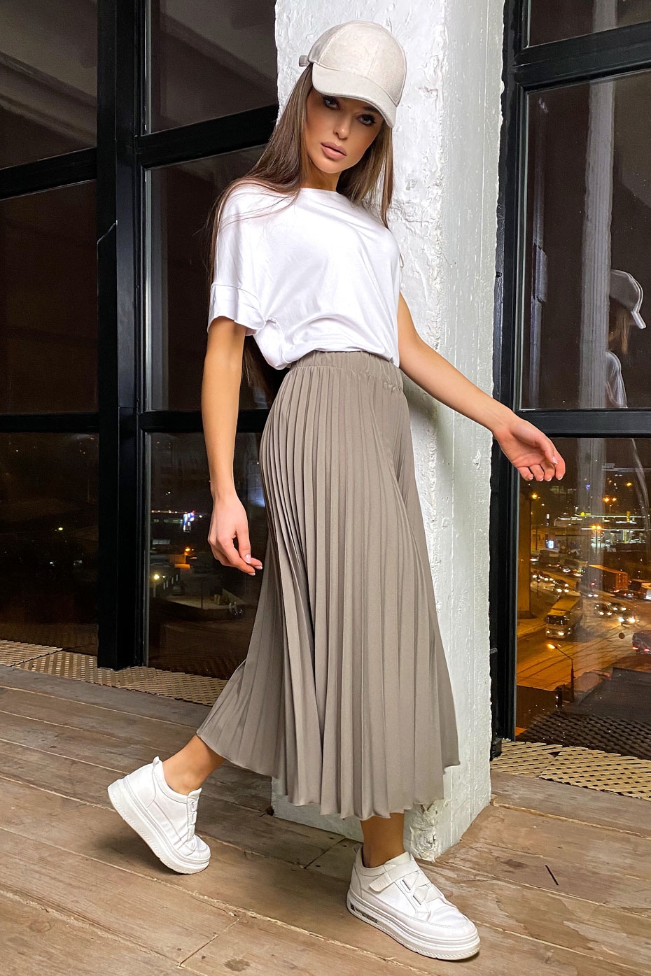 Бежевая юбка плиссе образы