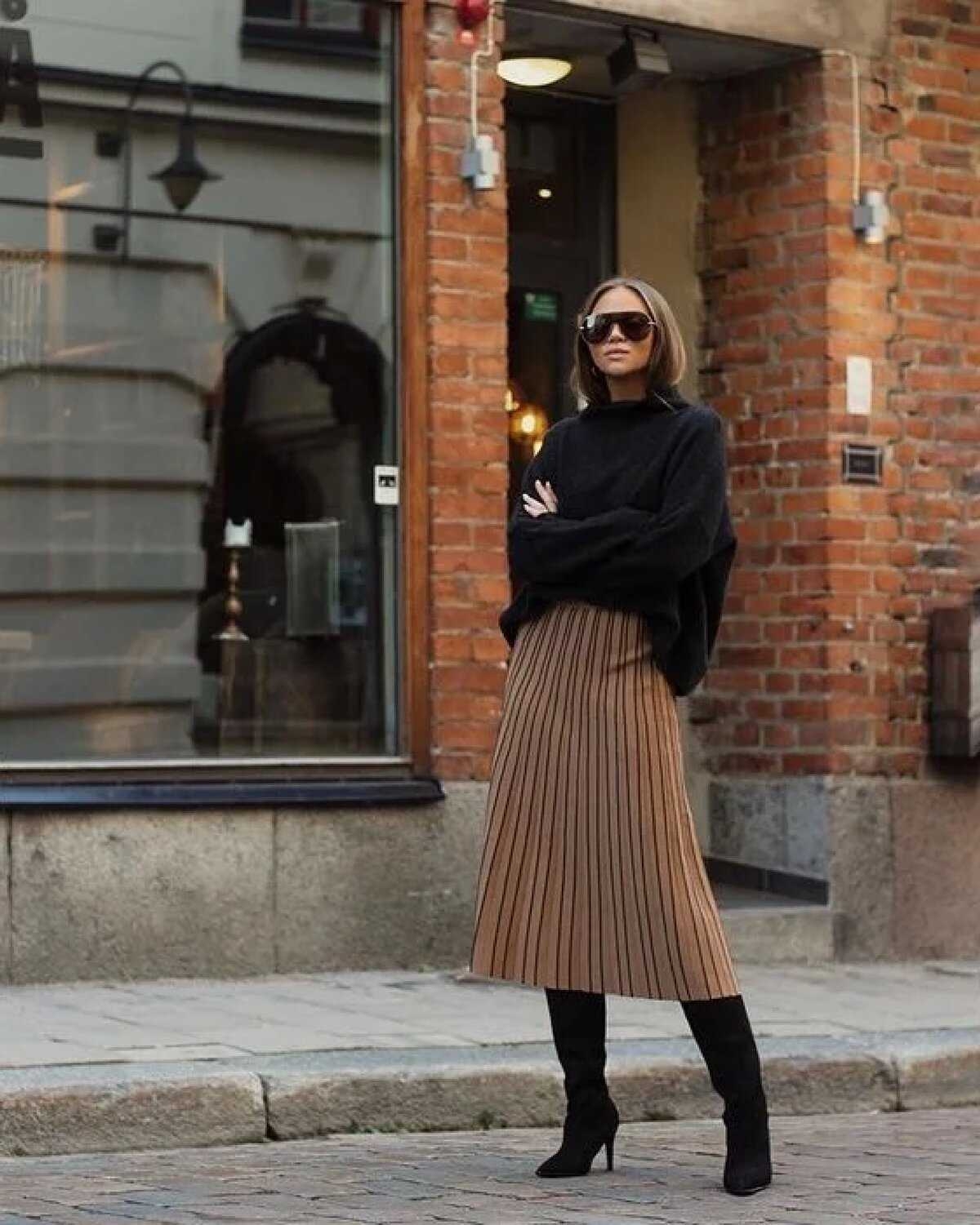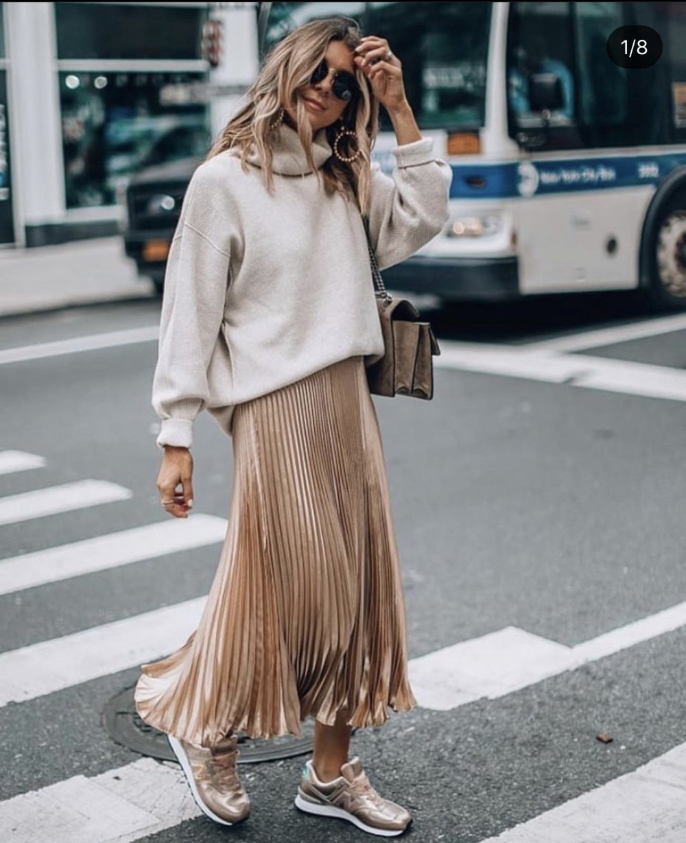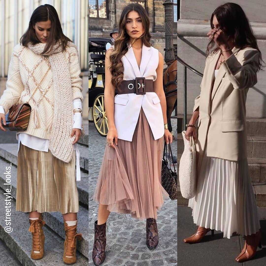 Образ с юбкой плиссе 2022 миди