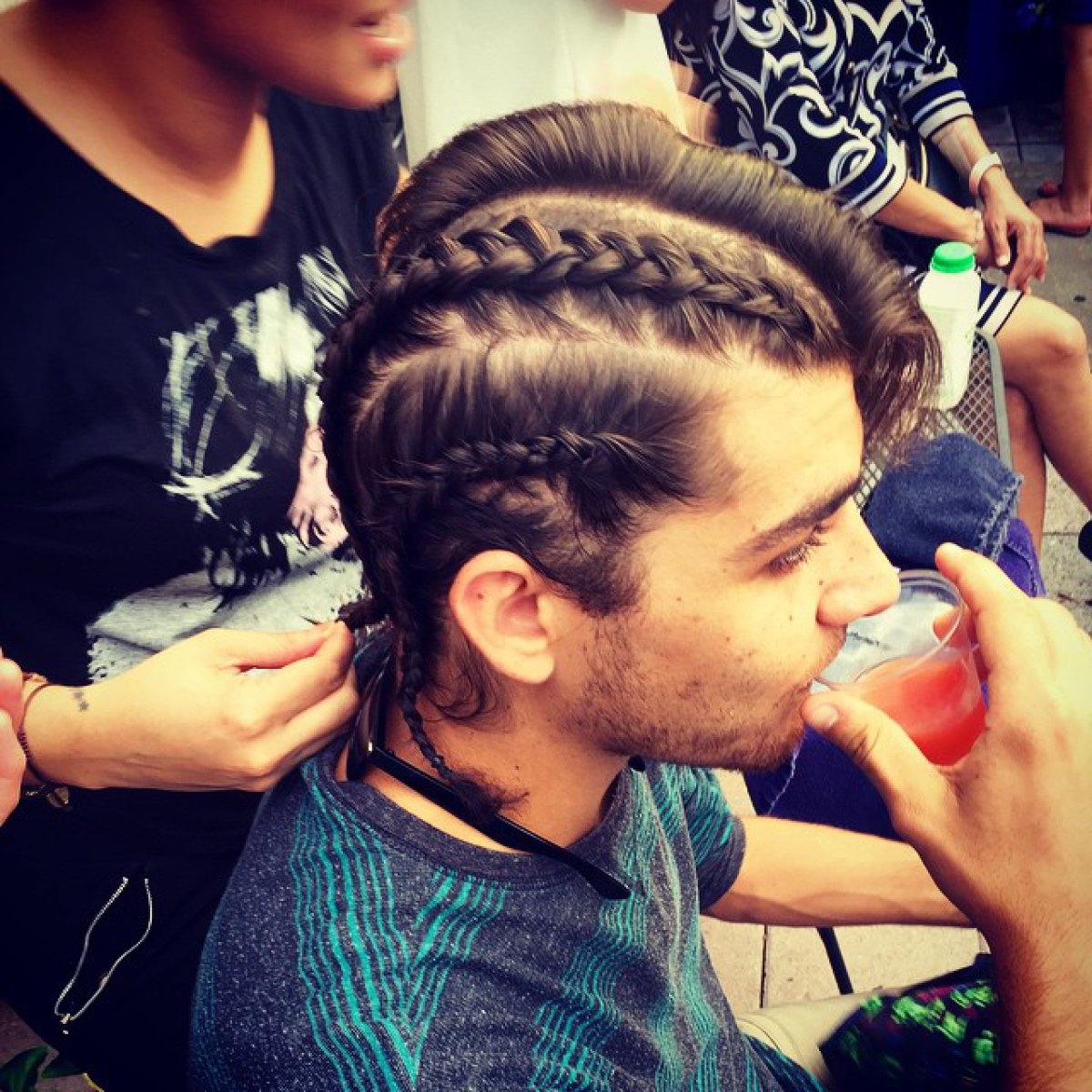 Парень заплетает волосы
