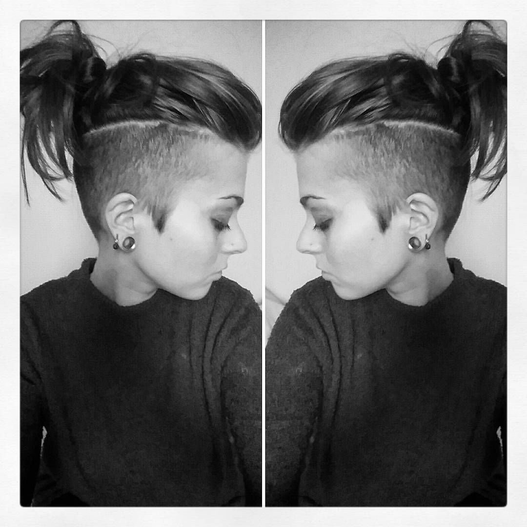 Стрижки с выбритыми висками и затылком с хвостиком
