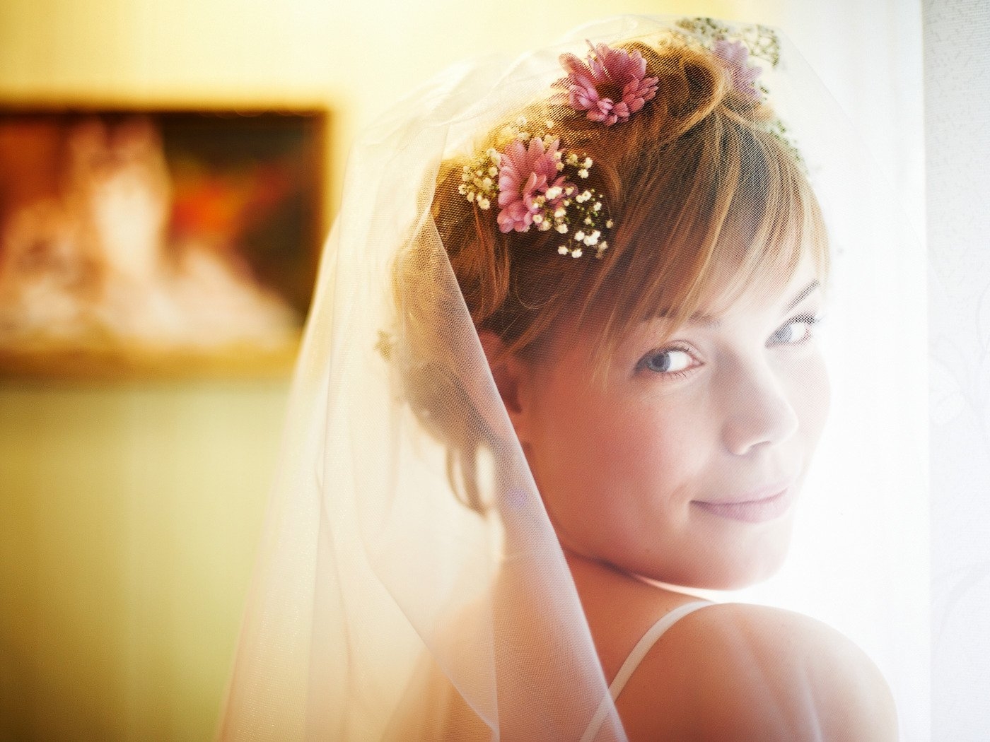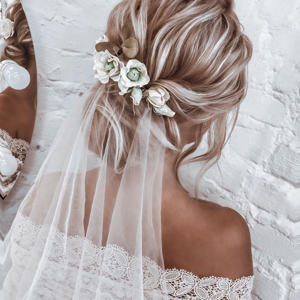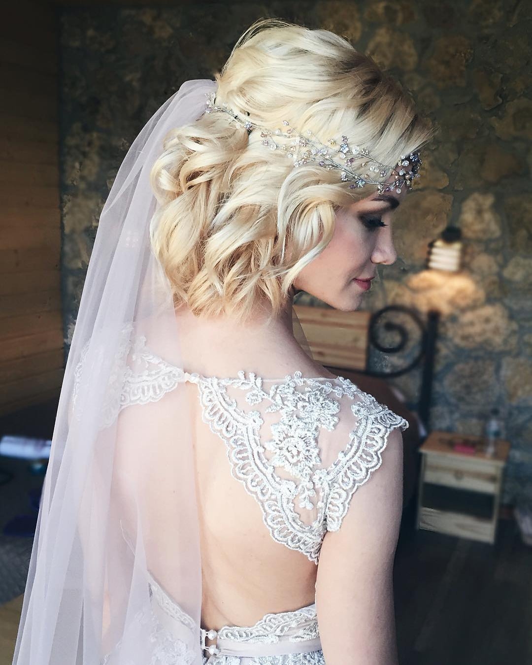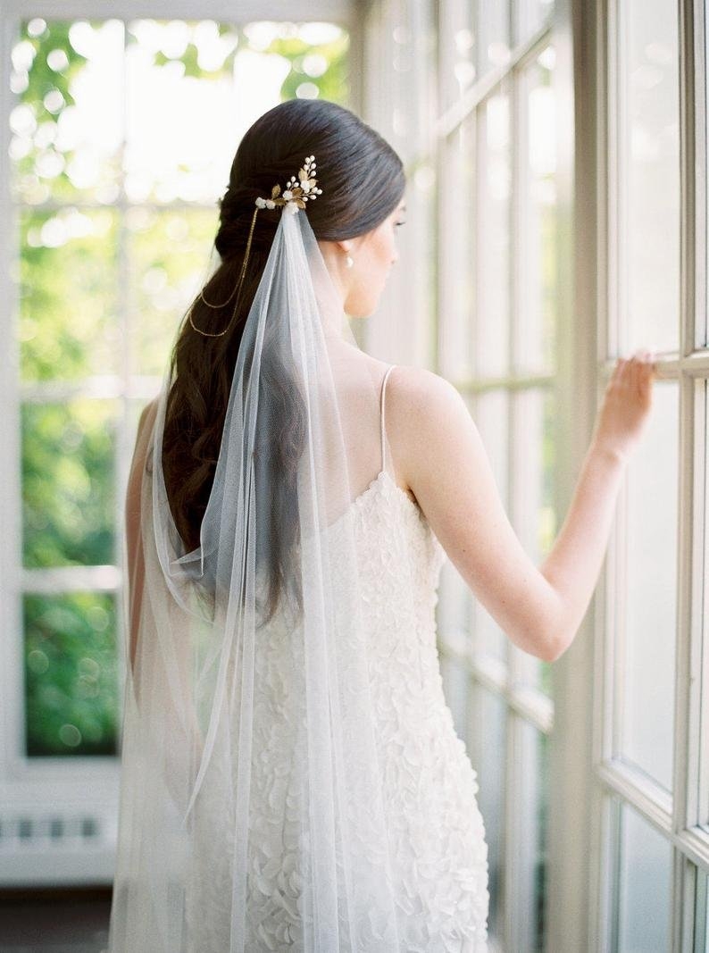 Свадебная прическа для невесты на длинные волосы с фатой 2022