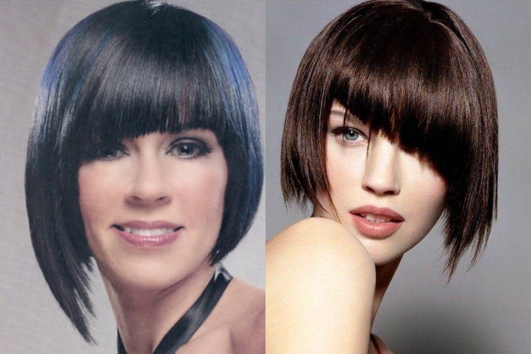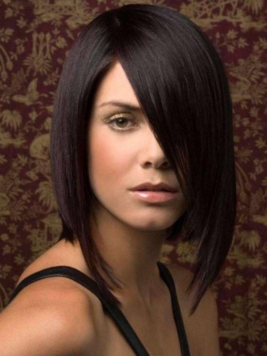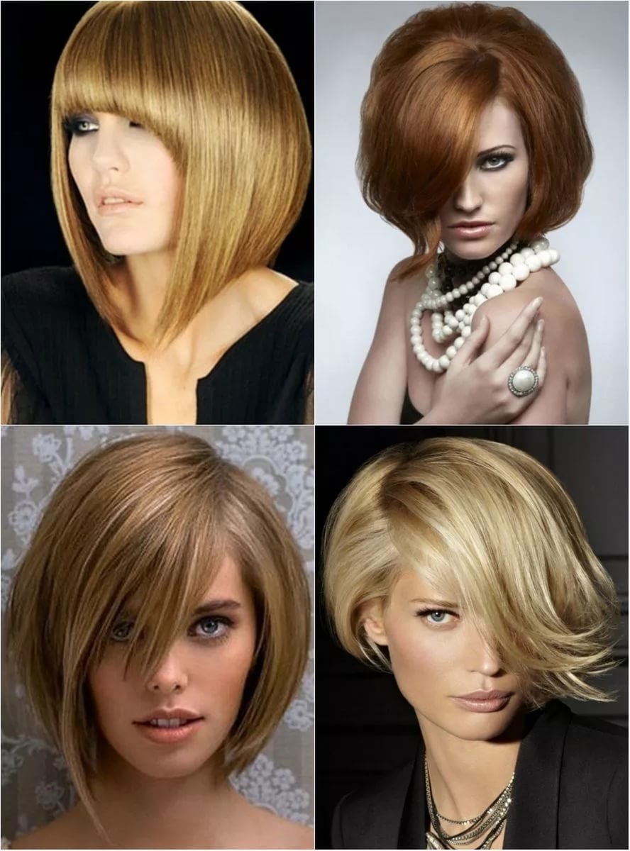 Стрижка Боб с асимметрией на средние волосы с челкой
