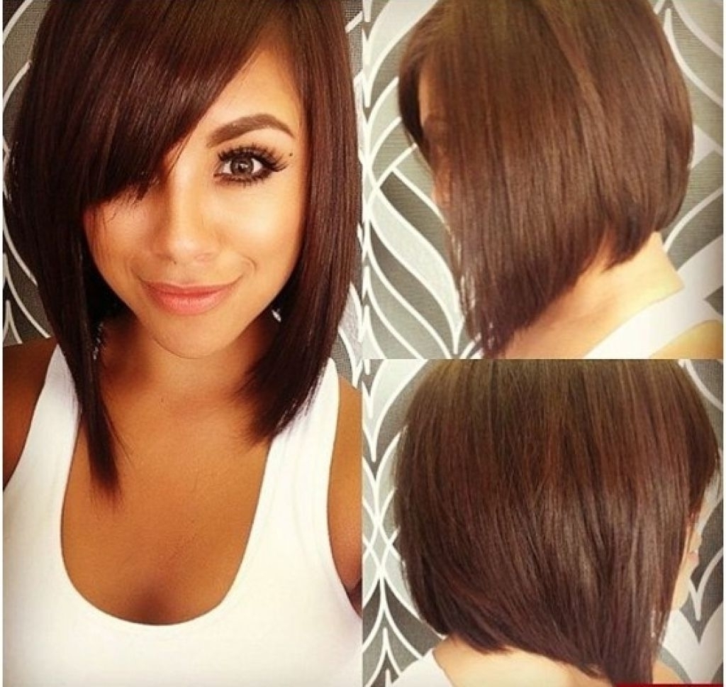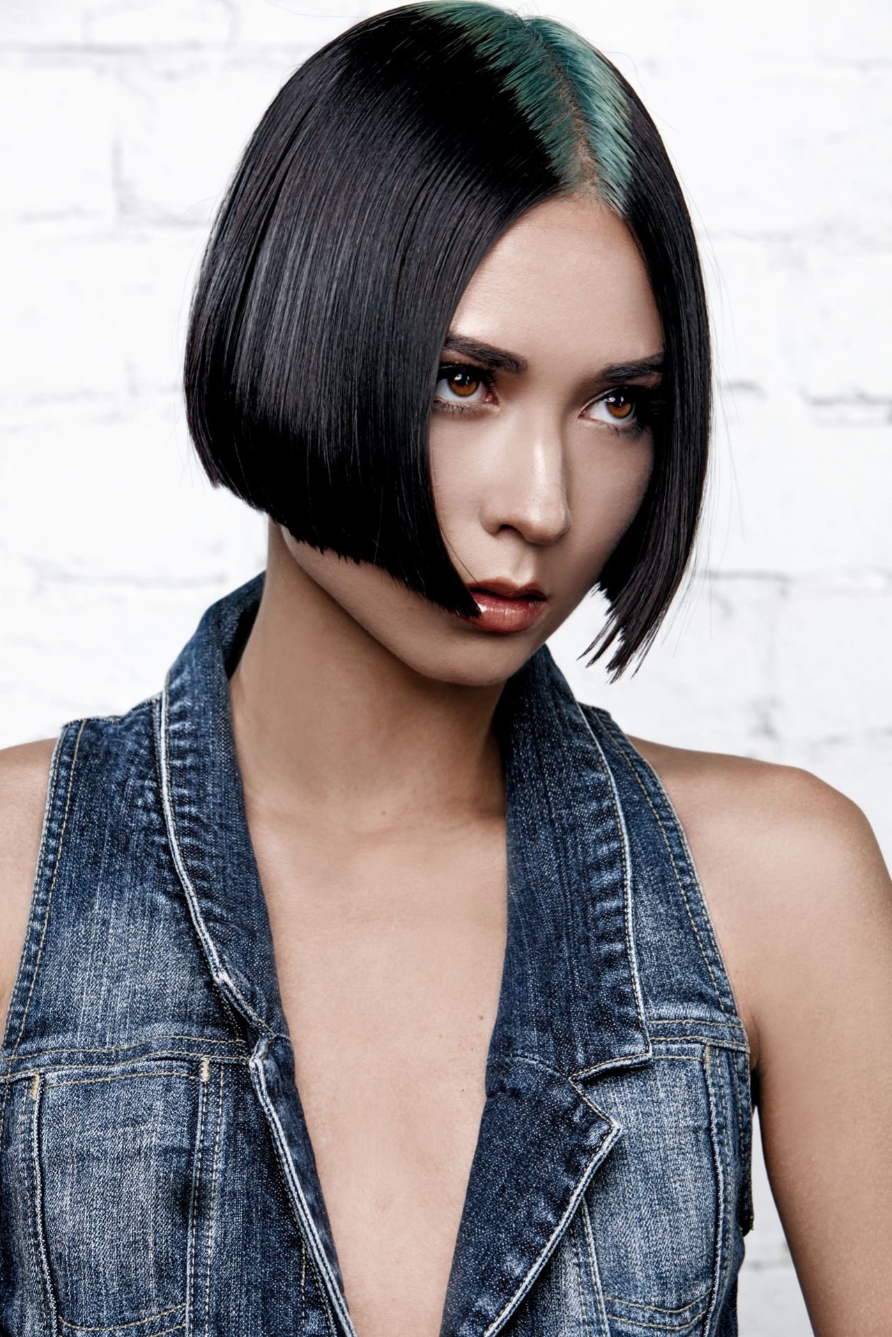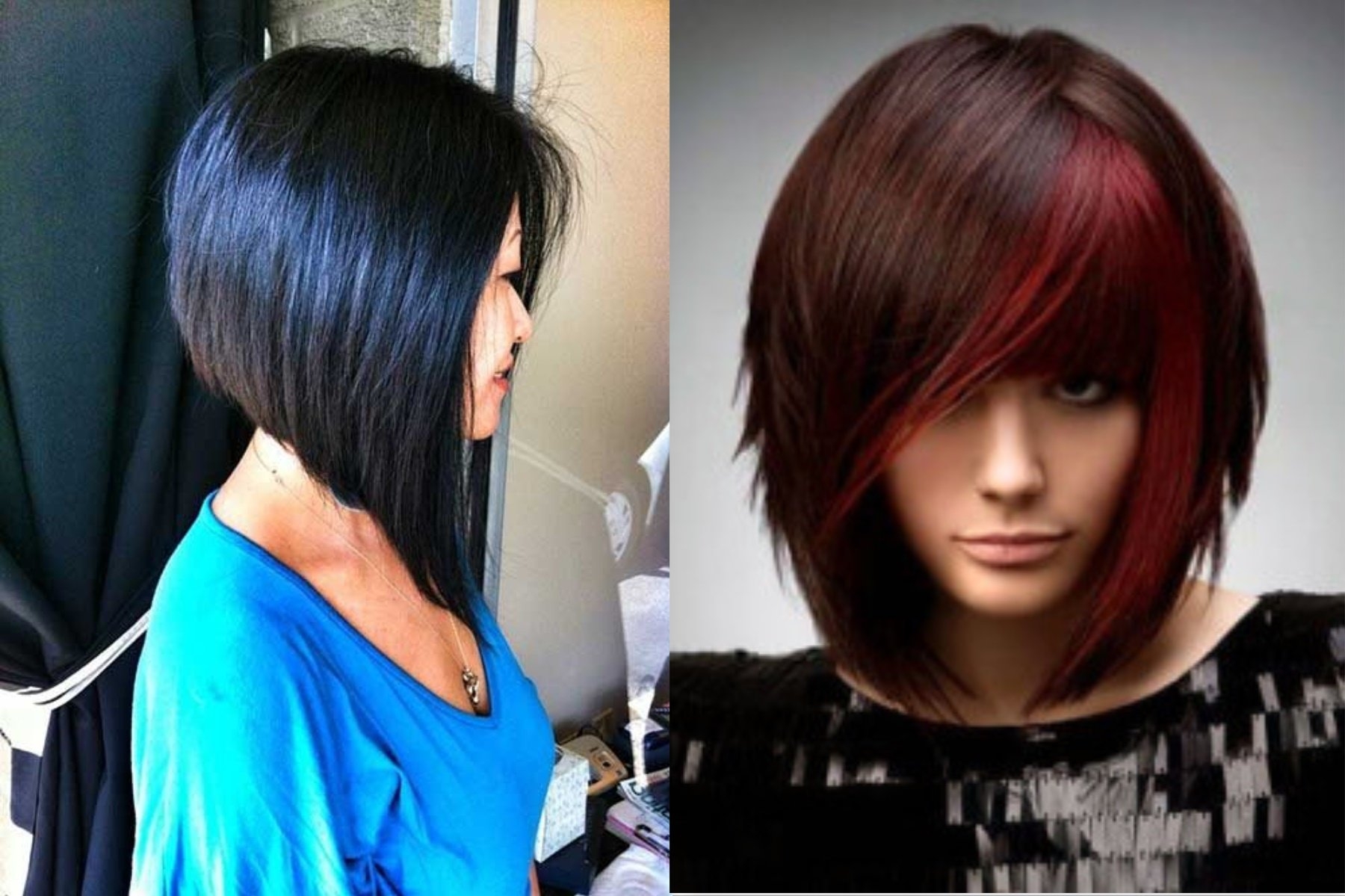 Стрижка Боб с асимметрией на средние волосы с челкой