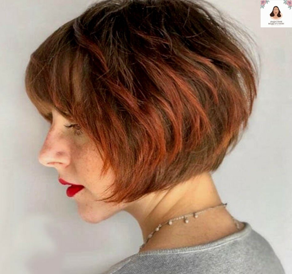 Каскадный боб на короткие волосы с челкой