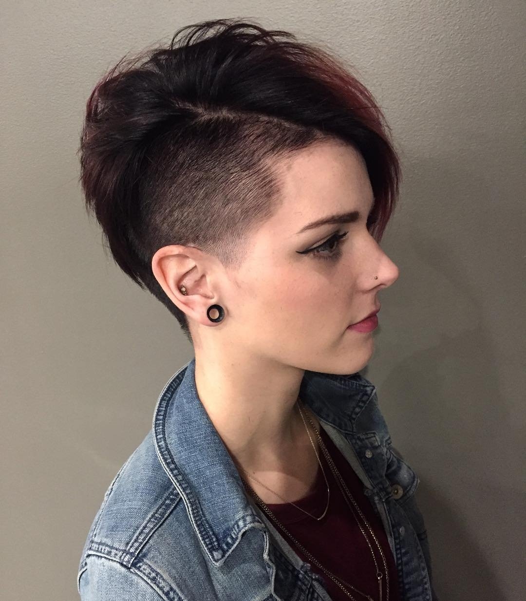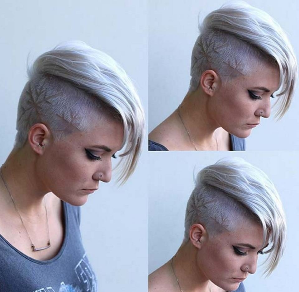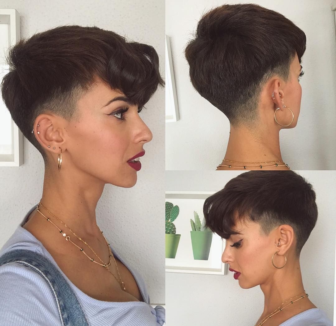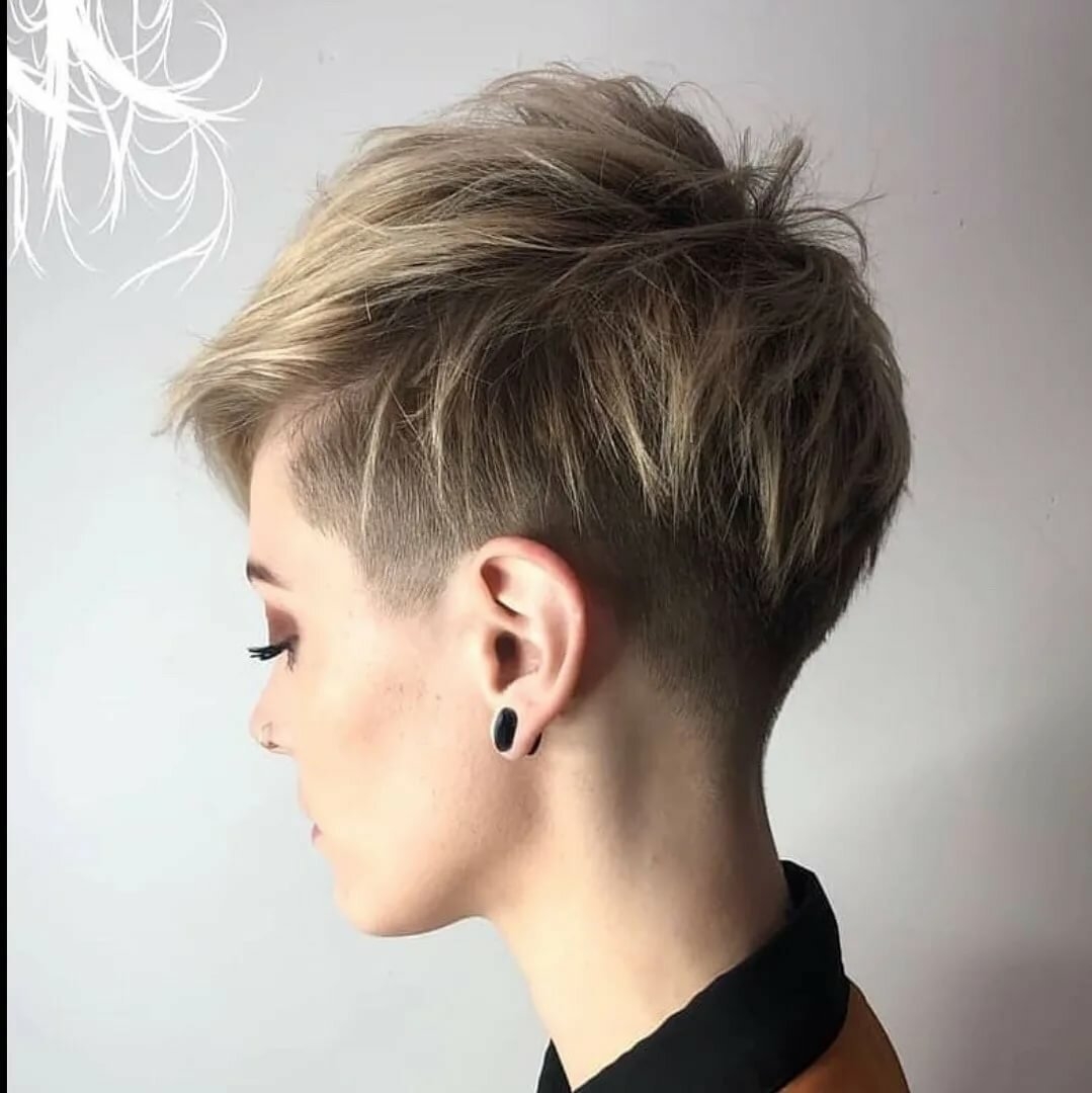 Короткие женские стрижки с выбритыми висками и короткой челкой