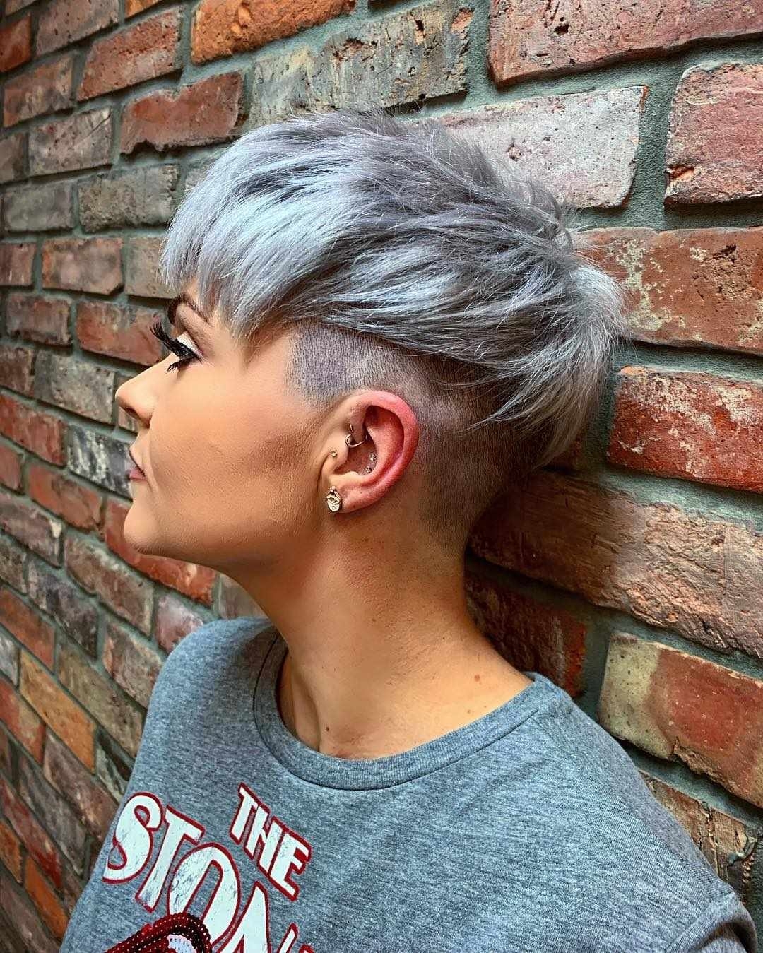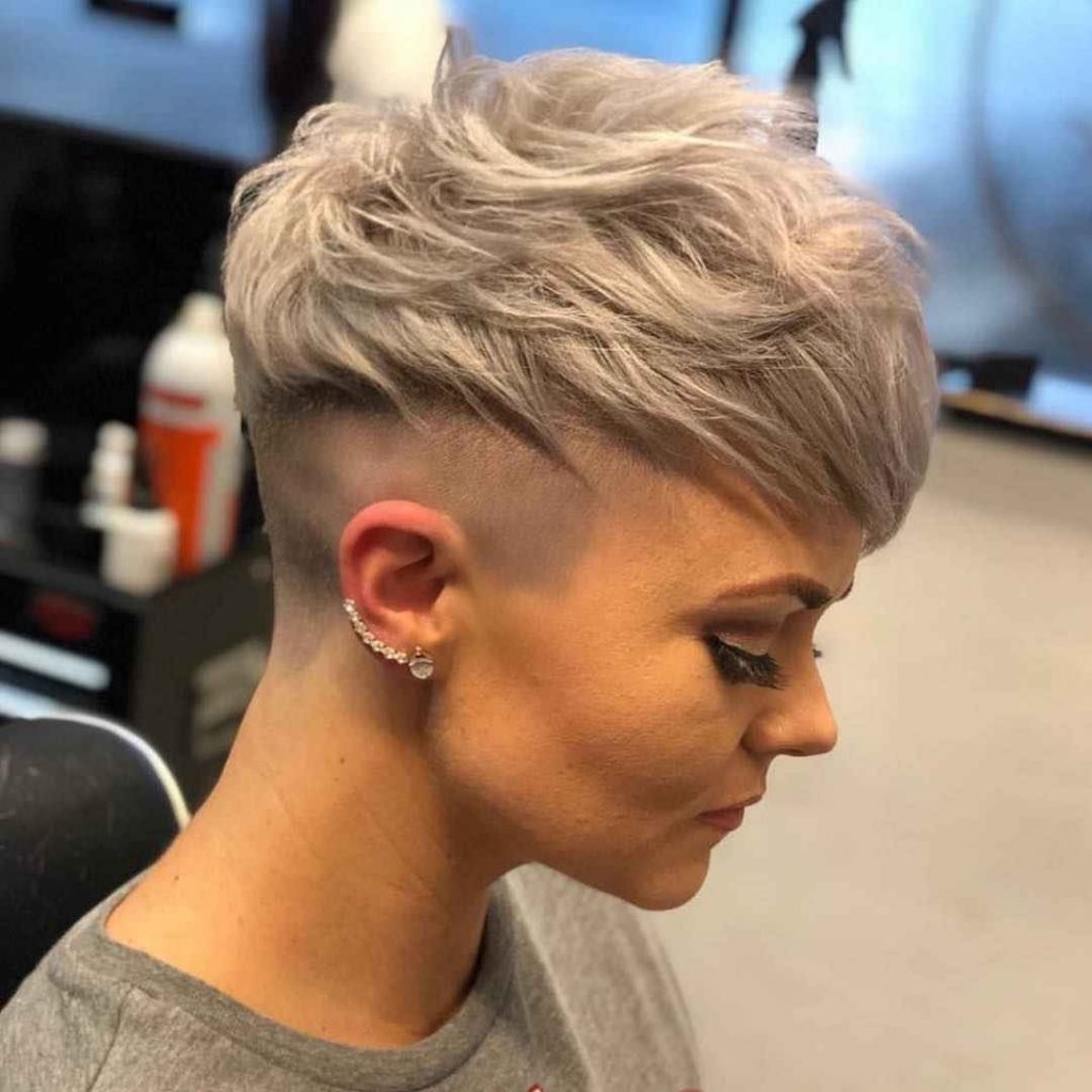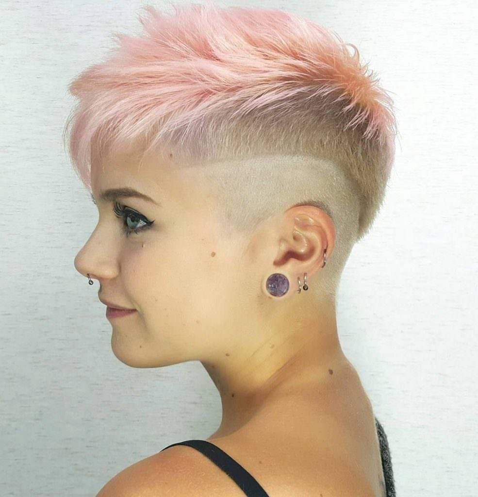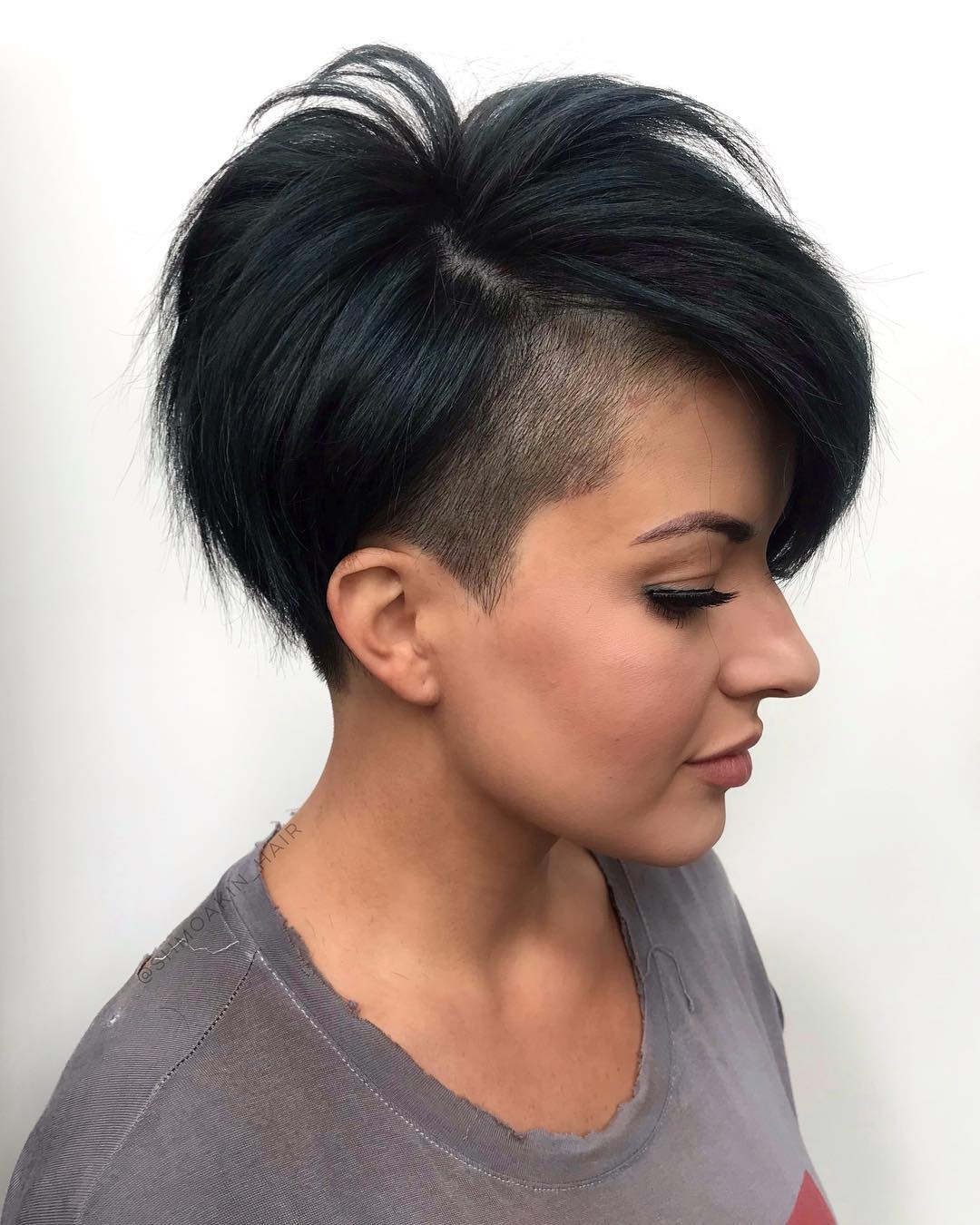 Короткие женские стрижки с выбритыми висками и короткой челкой