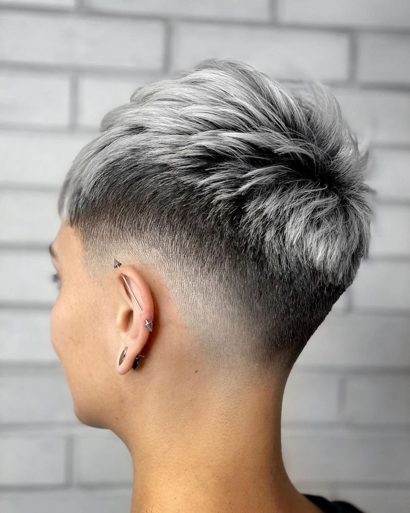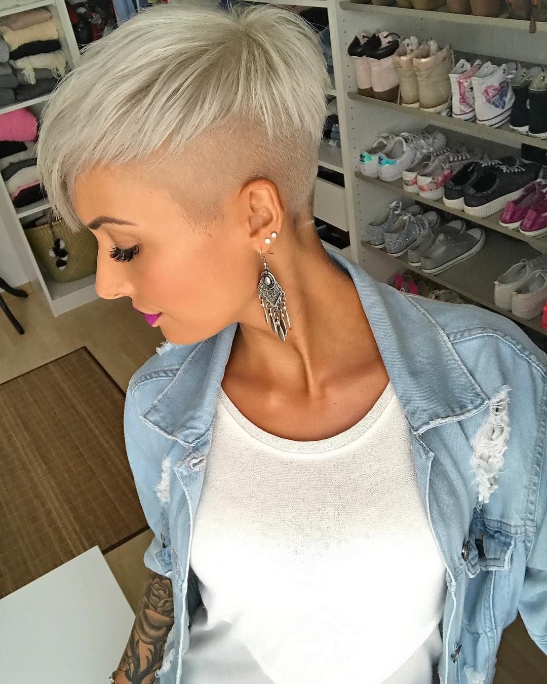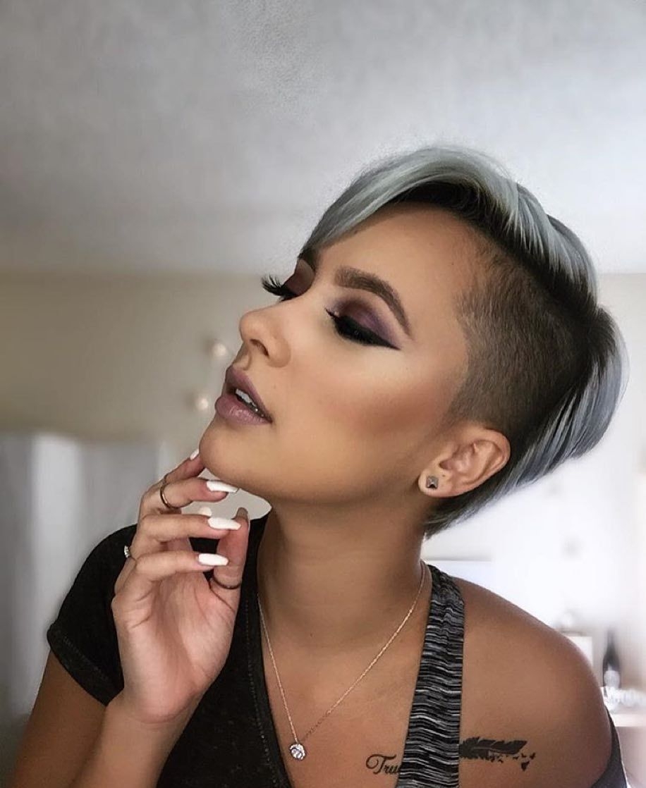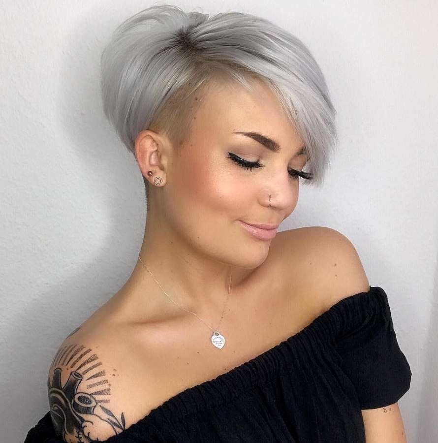 Короткие женские стрижки с выбритыми висками и короткой челкой
