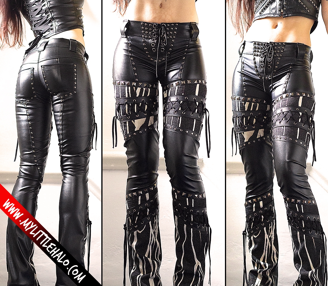 Кожаные штаны с шипами женские