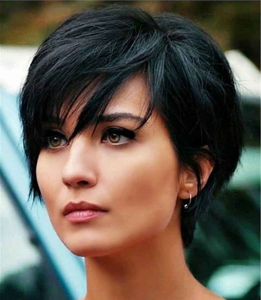 Стрижка Пикси с длинной челкой на бок