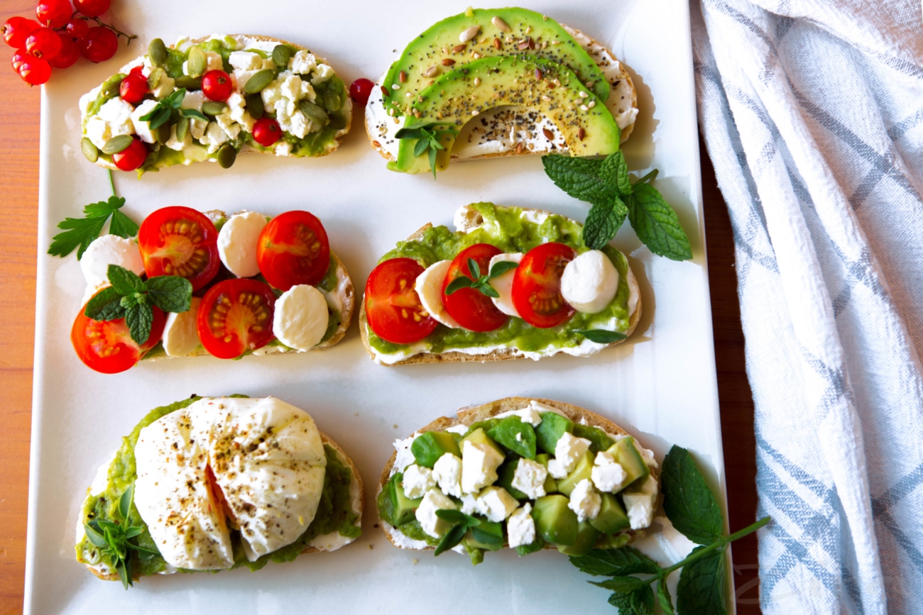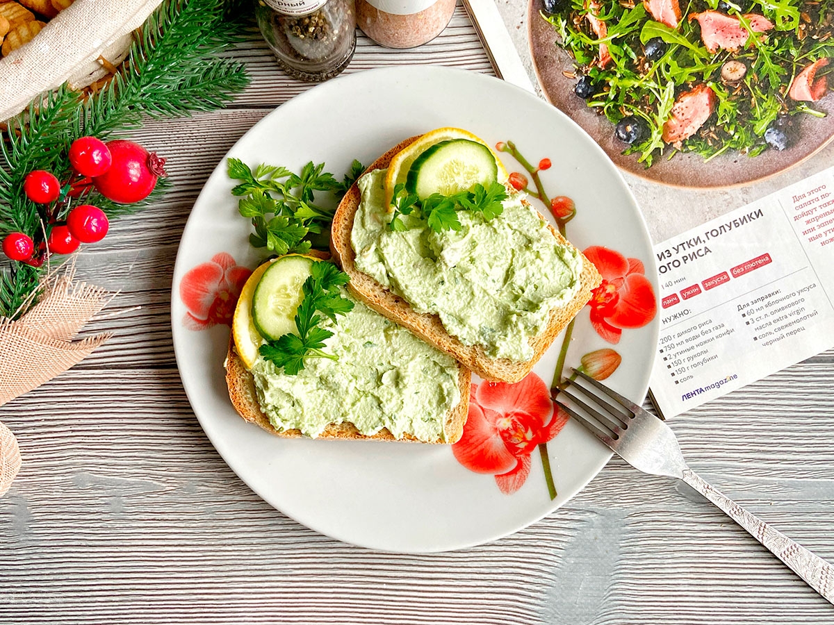 Брускетты с творожным кремом и авокадо