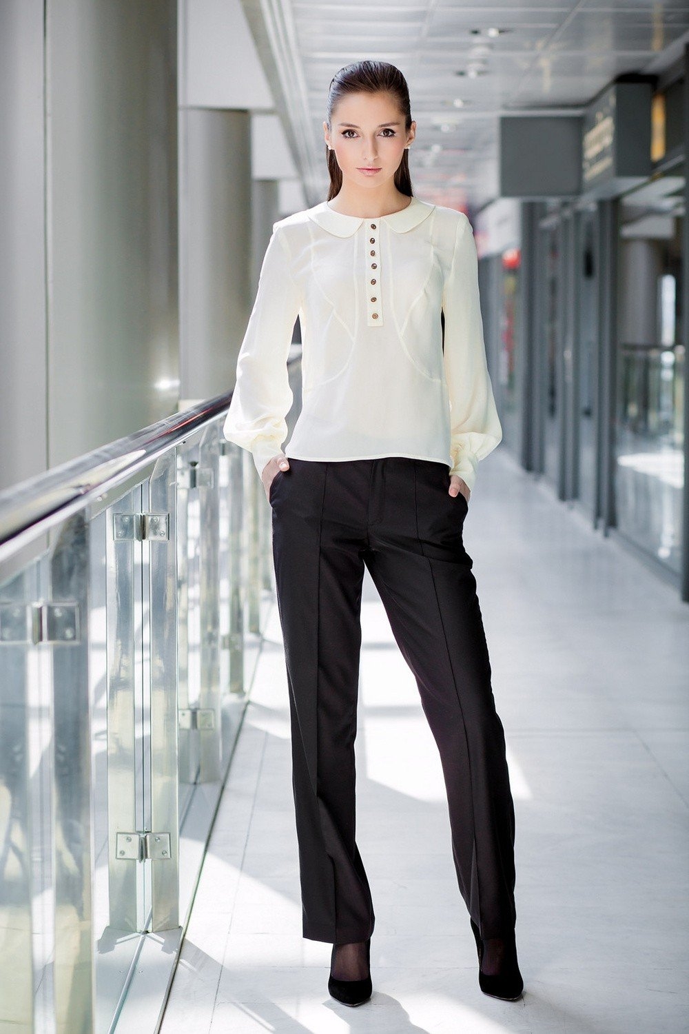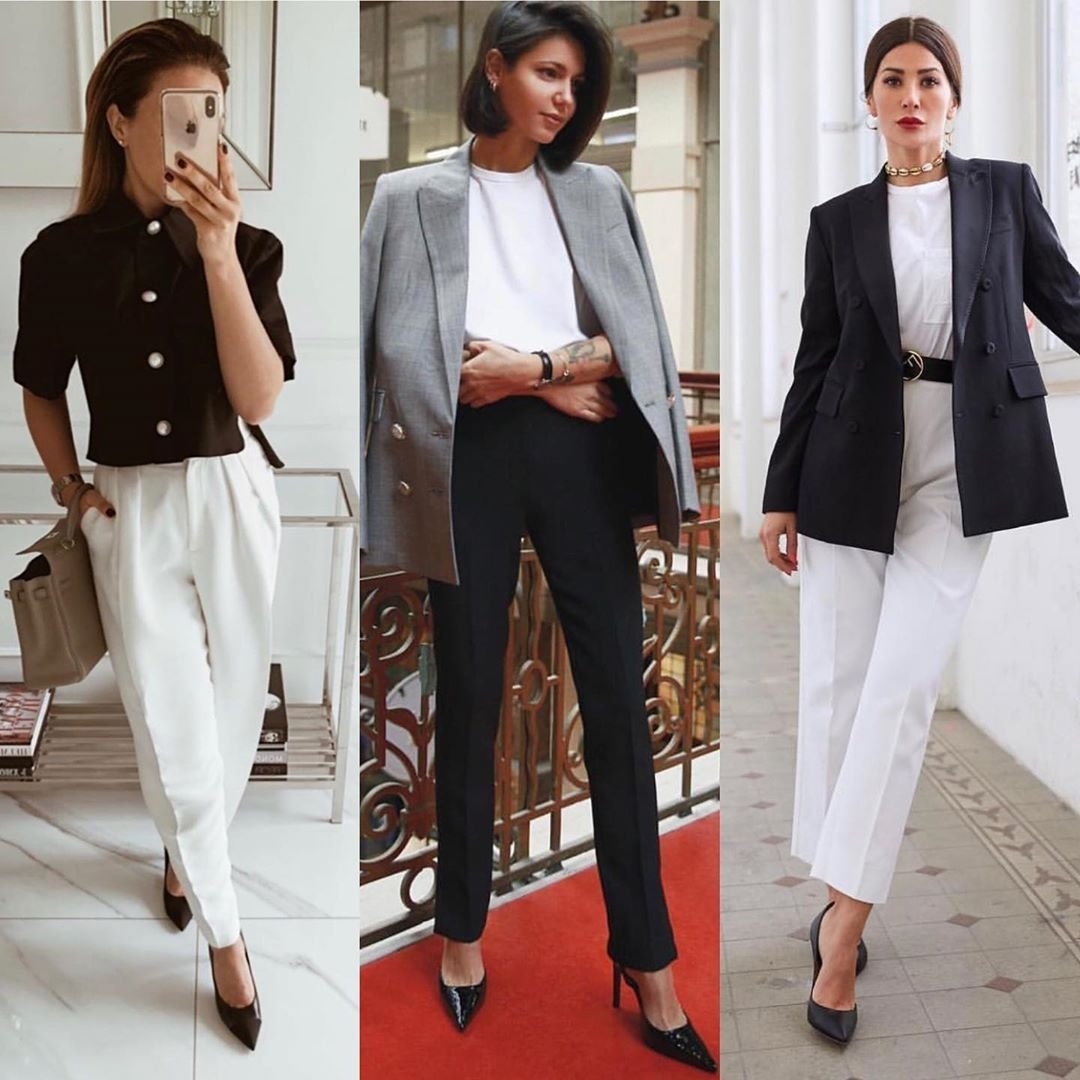 Белая блузка и черные брюки