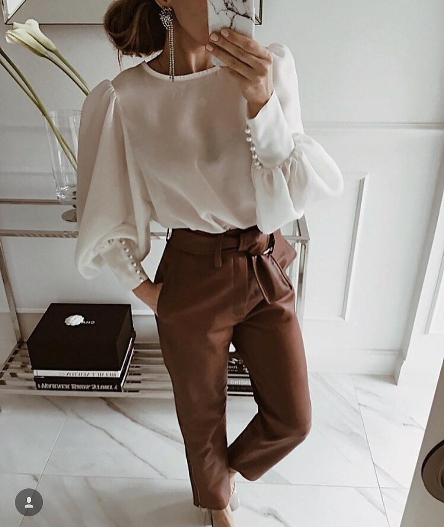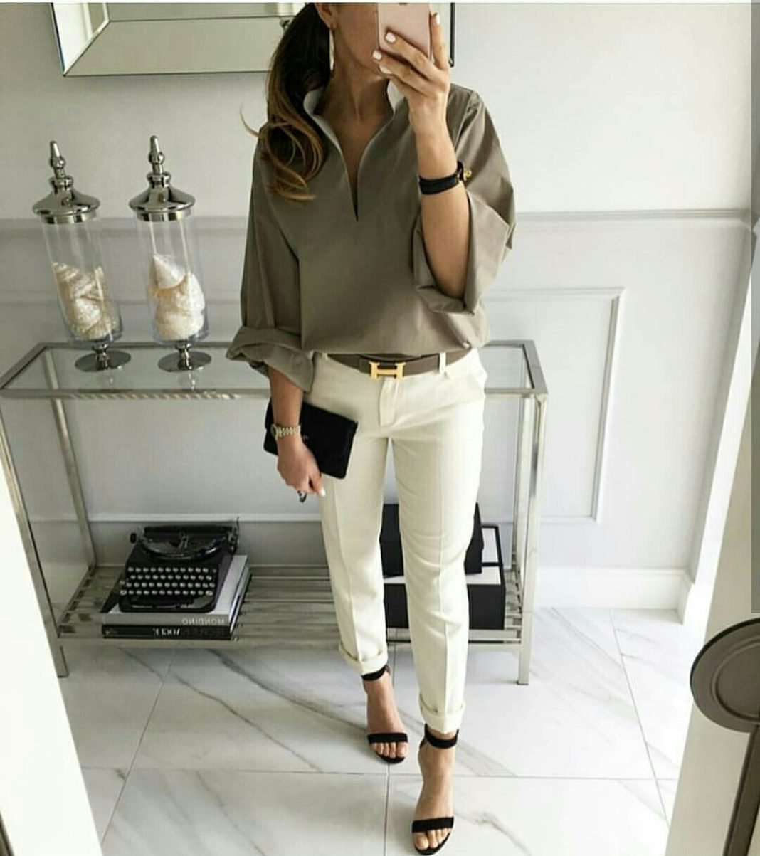 Белая блузка с брюками