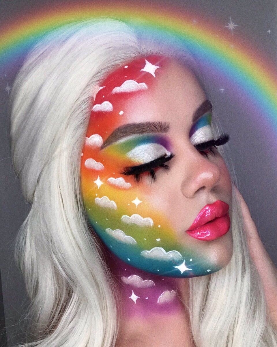 Радужный макияж лица
