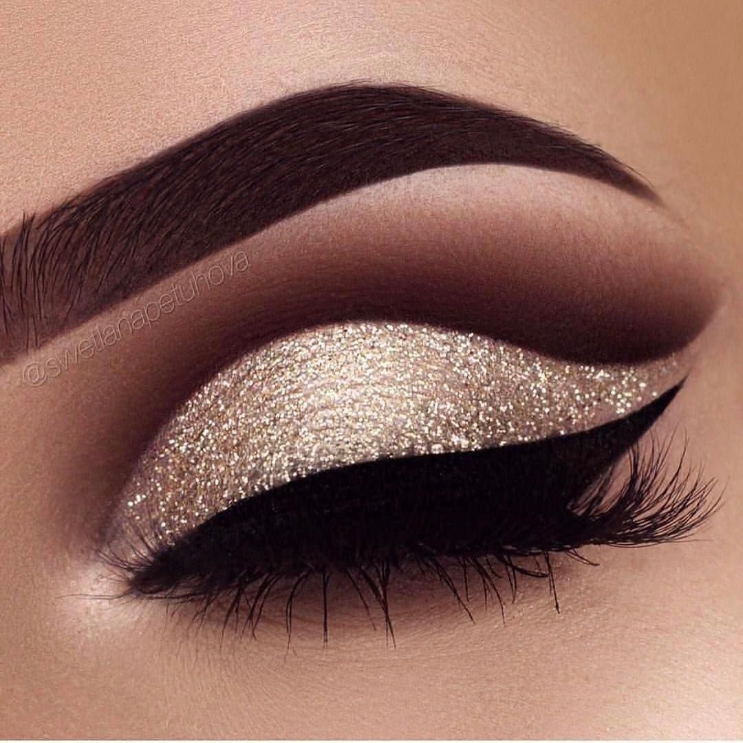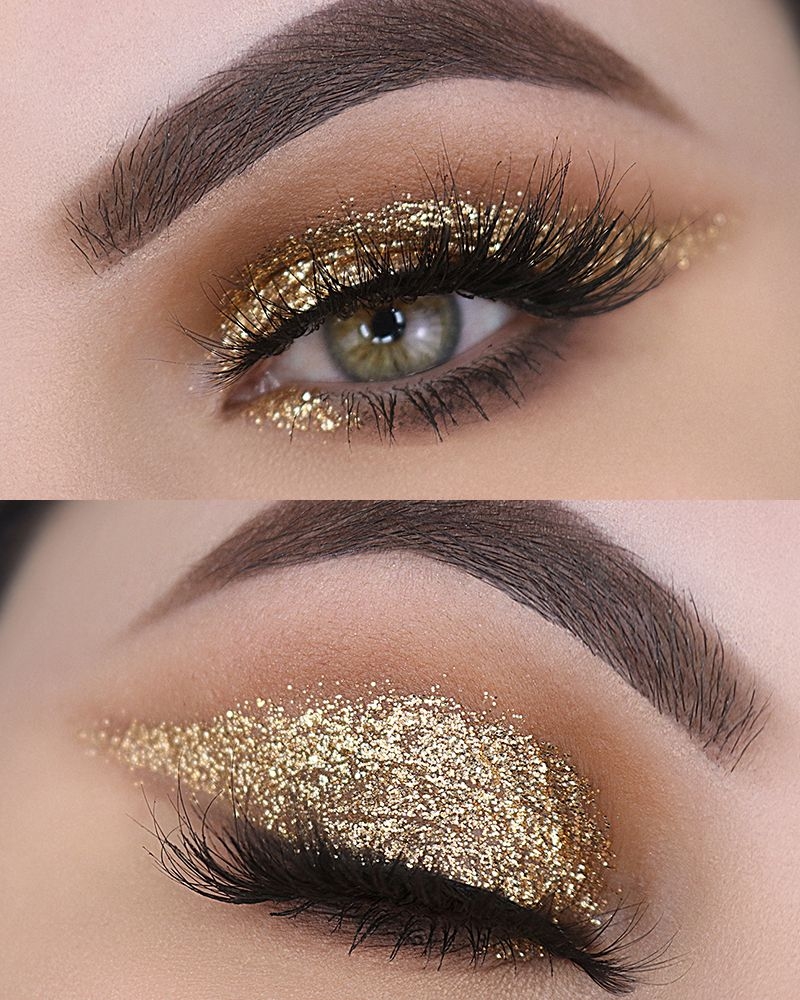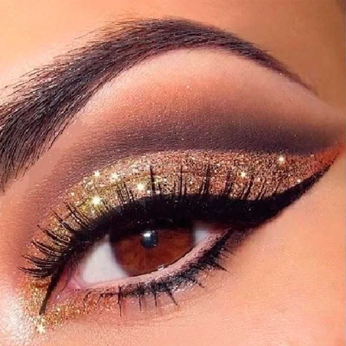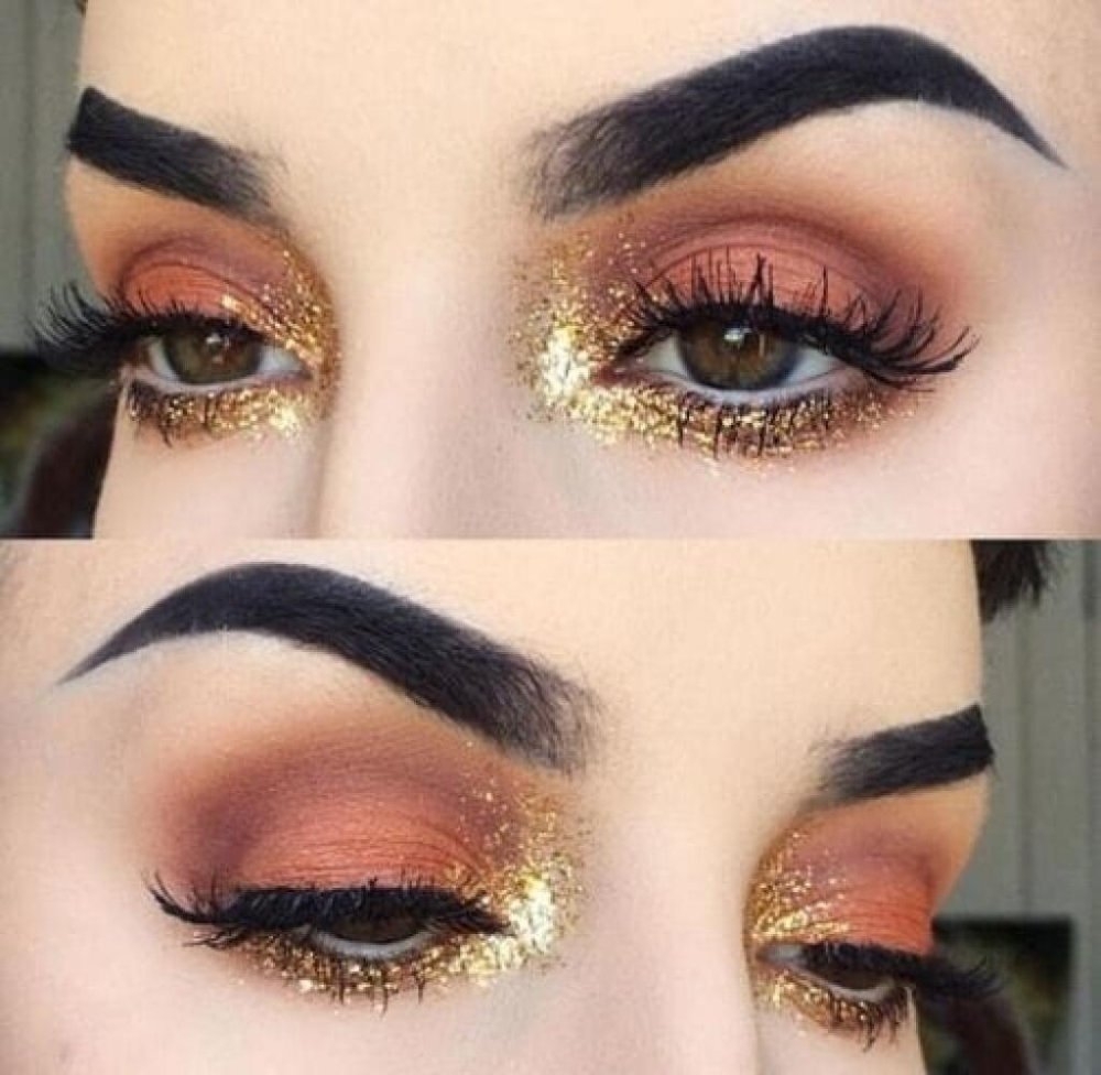 Макияж с золотистым глиттером