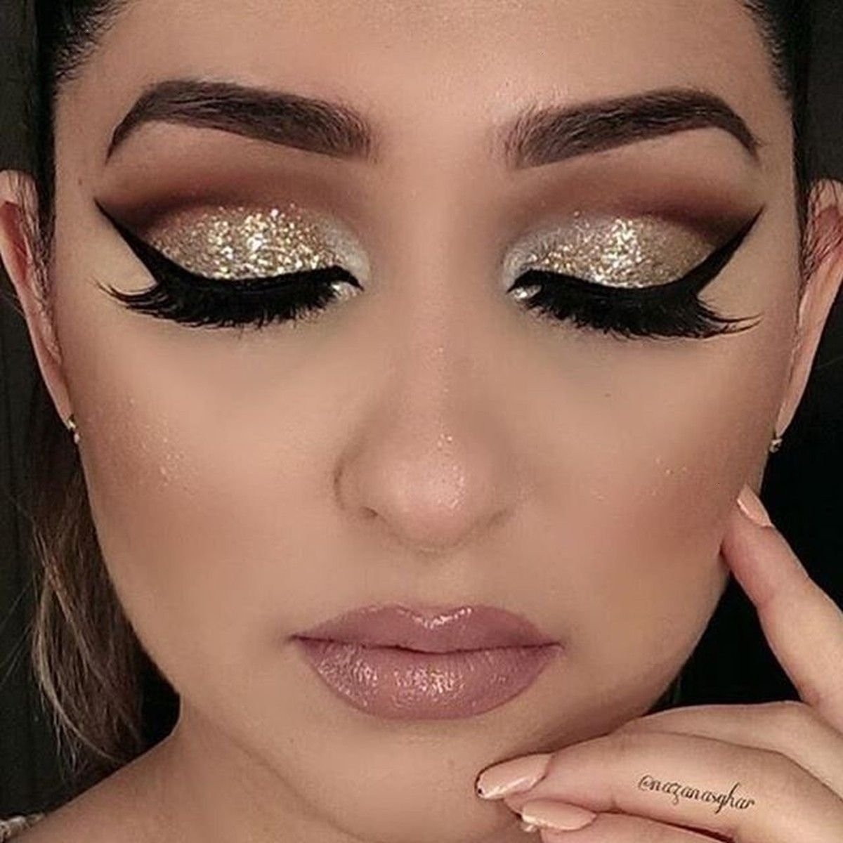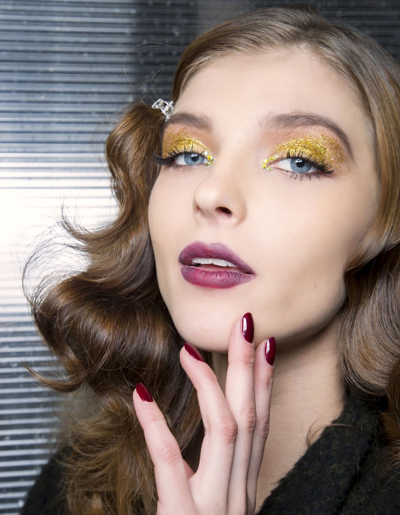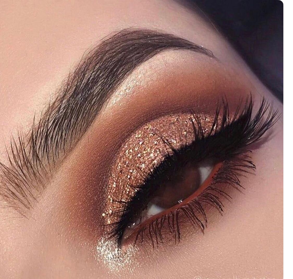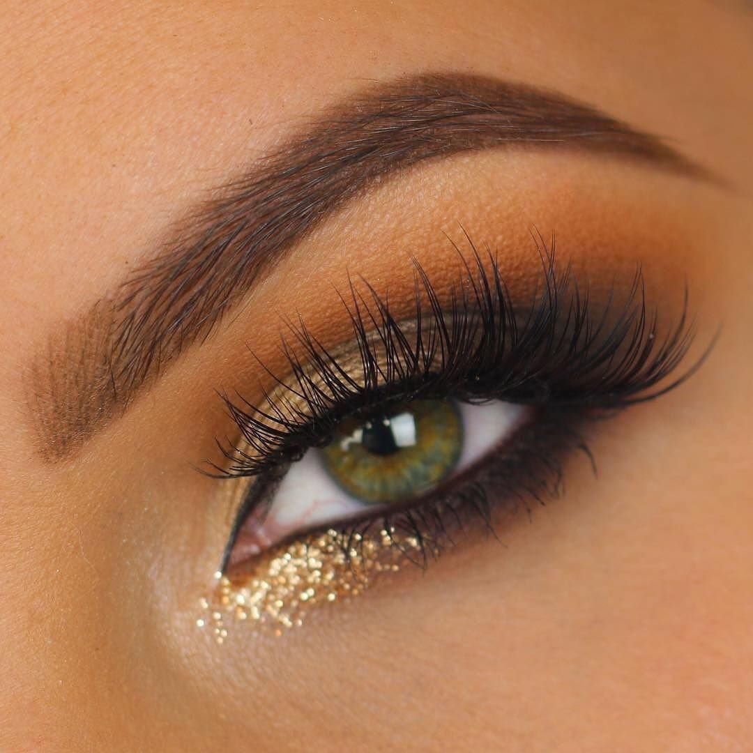 Макияж с золотистым глиттером