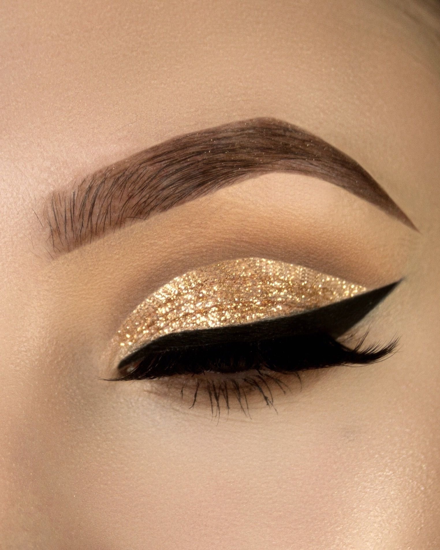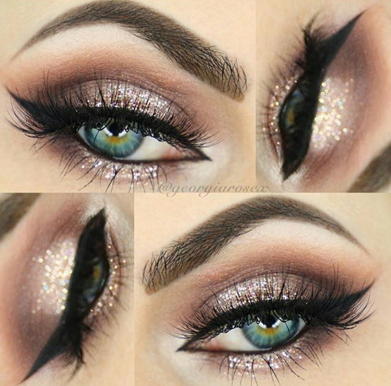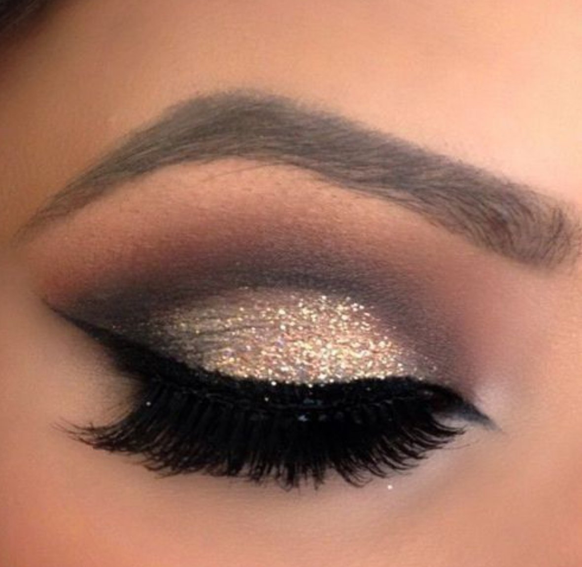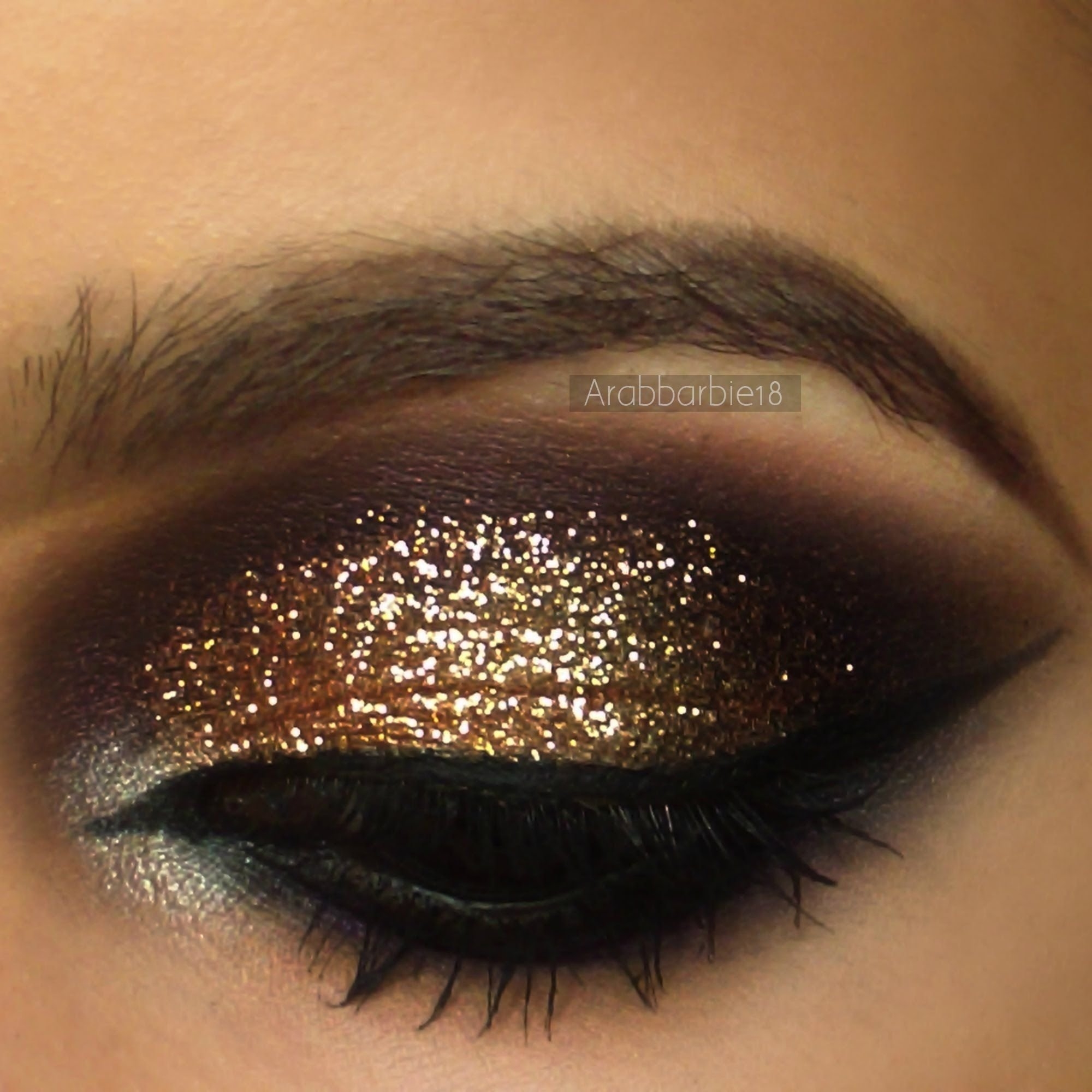 Макияж с золотистым глиттером
