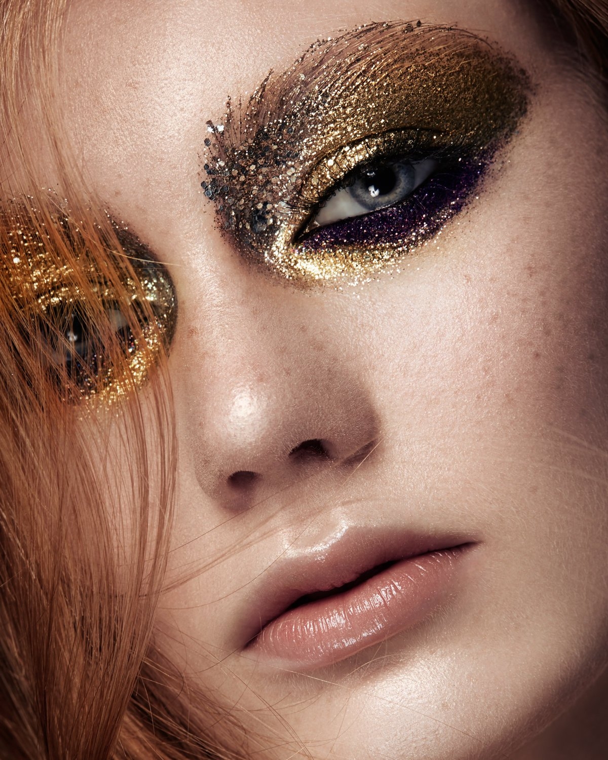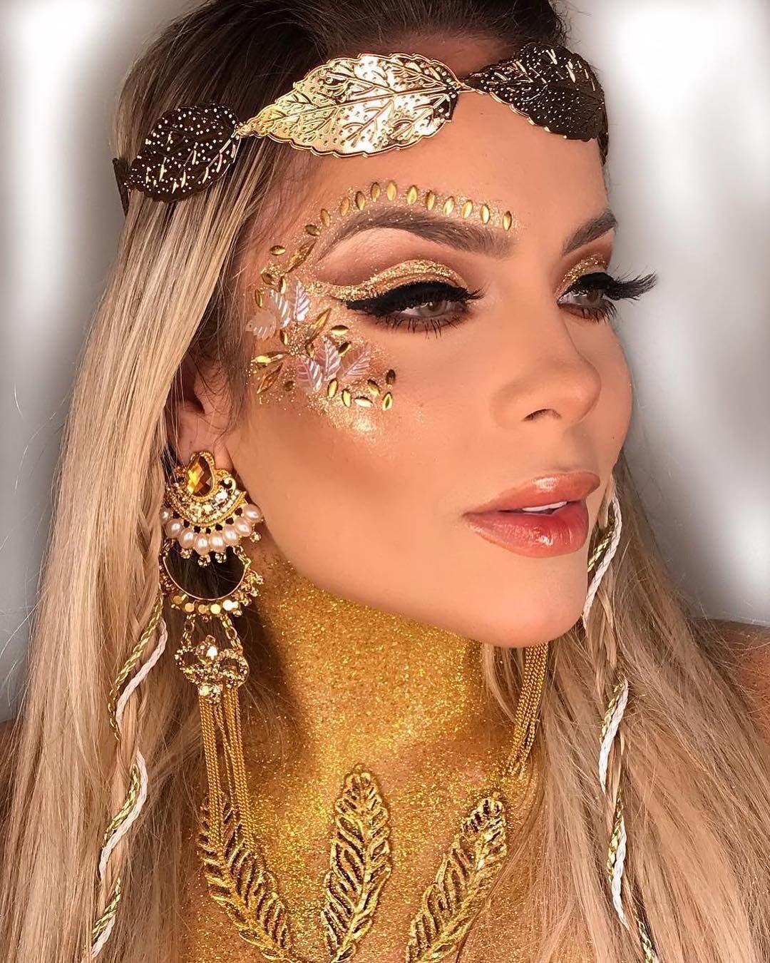 Макияж с золотыми блестками