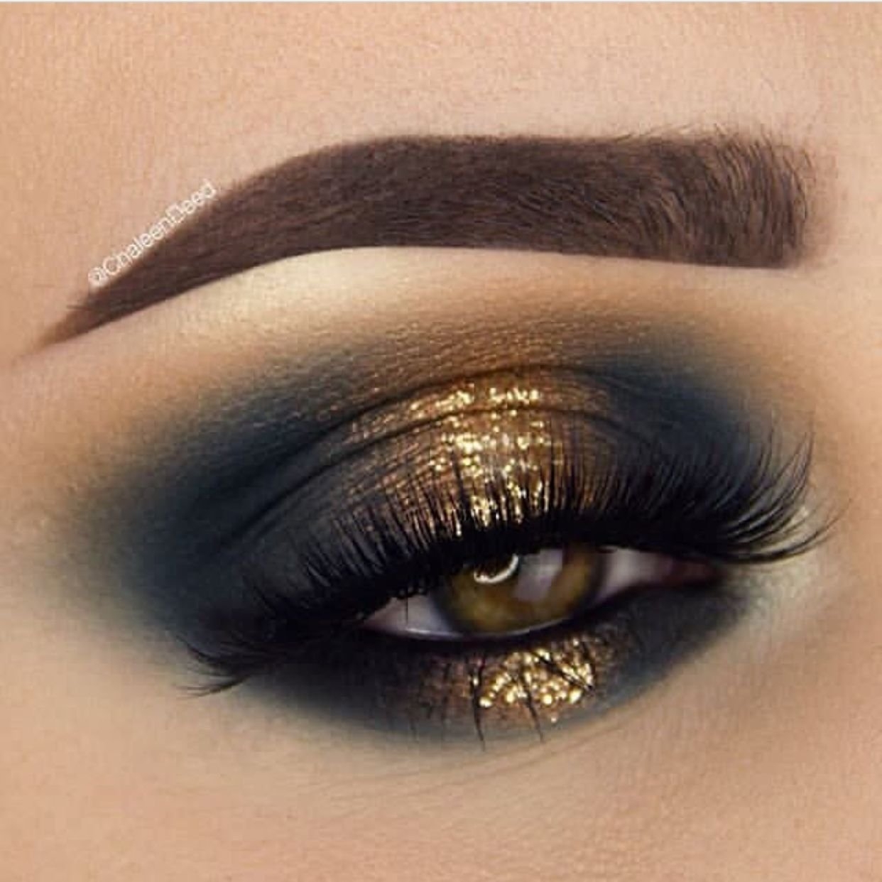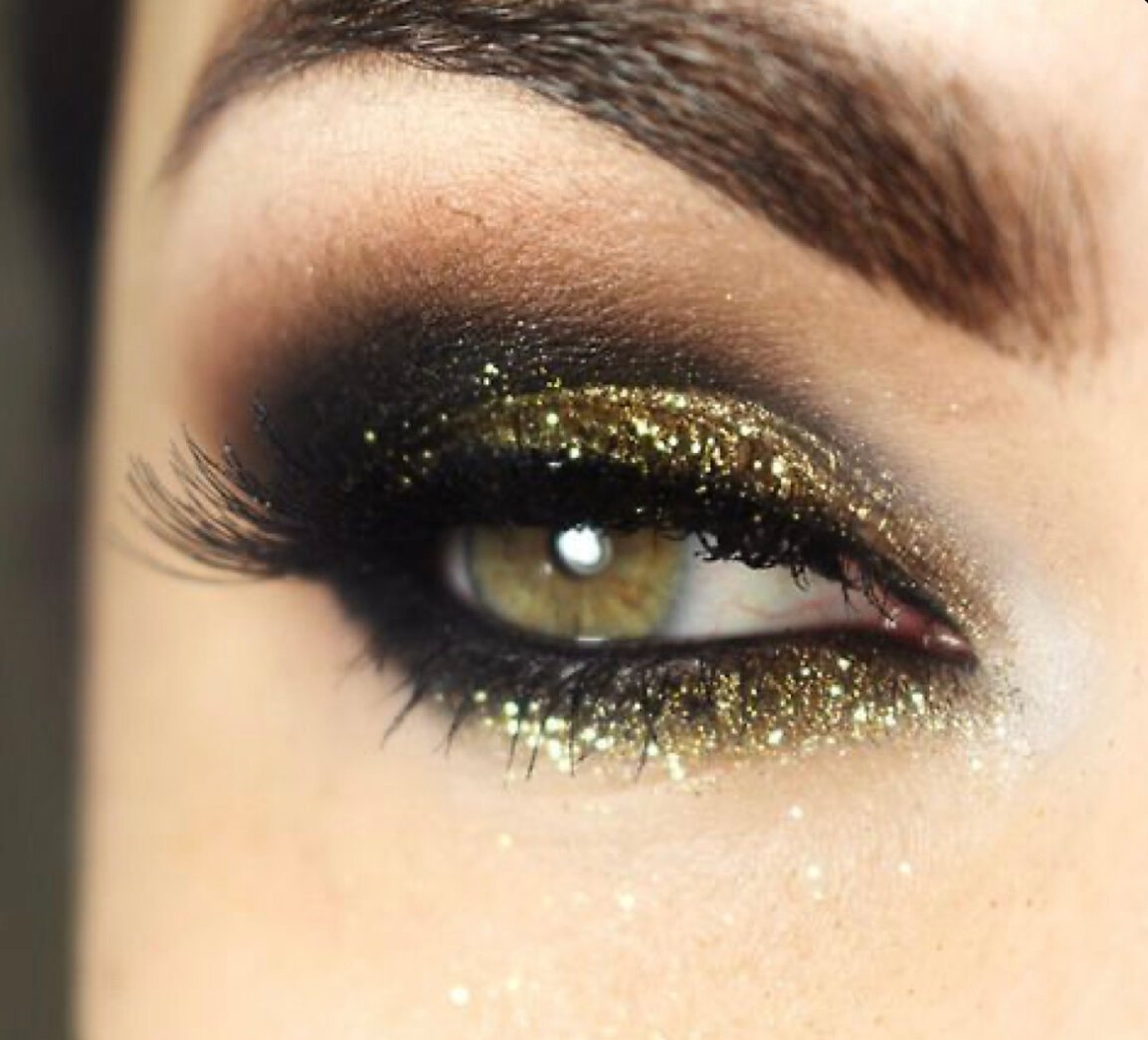 Черно золотой макияж