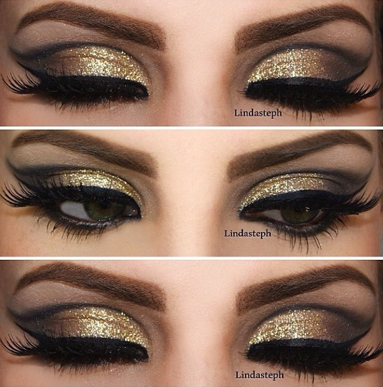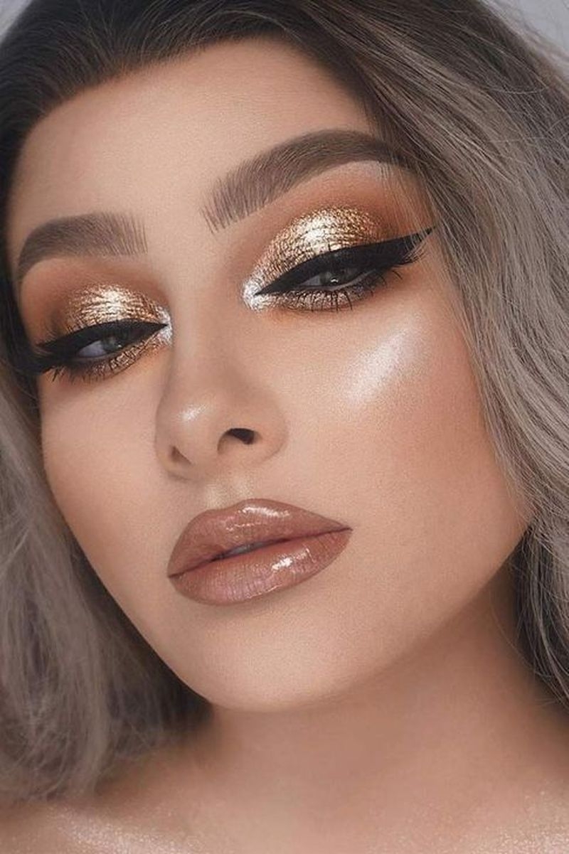 Макияж с золотыми стрелками