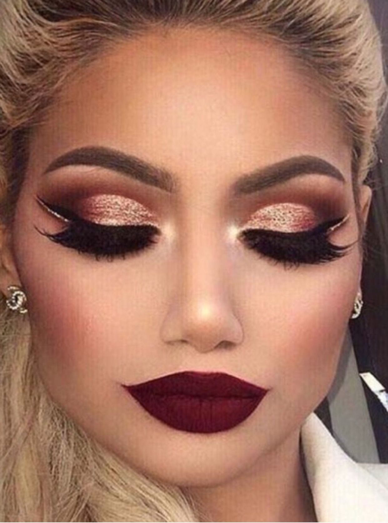 Макияж с блестящими тенями