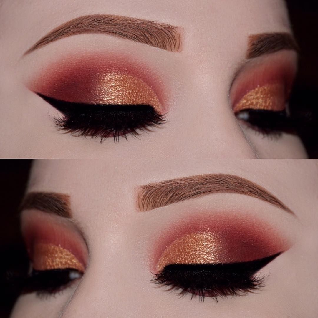 Красно золотой макияж
