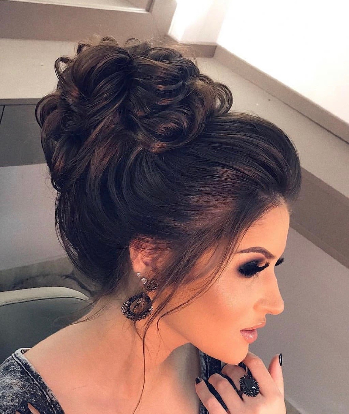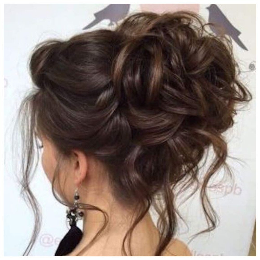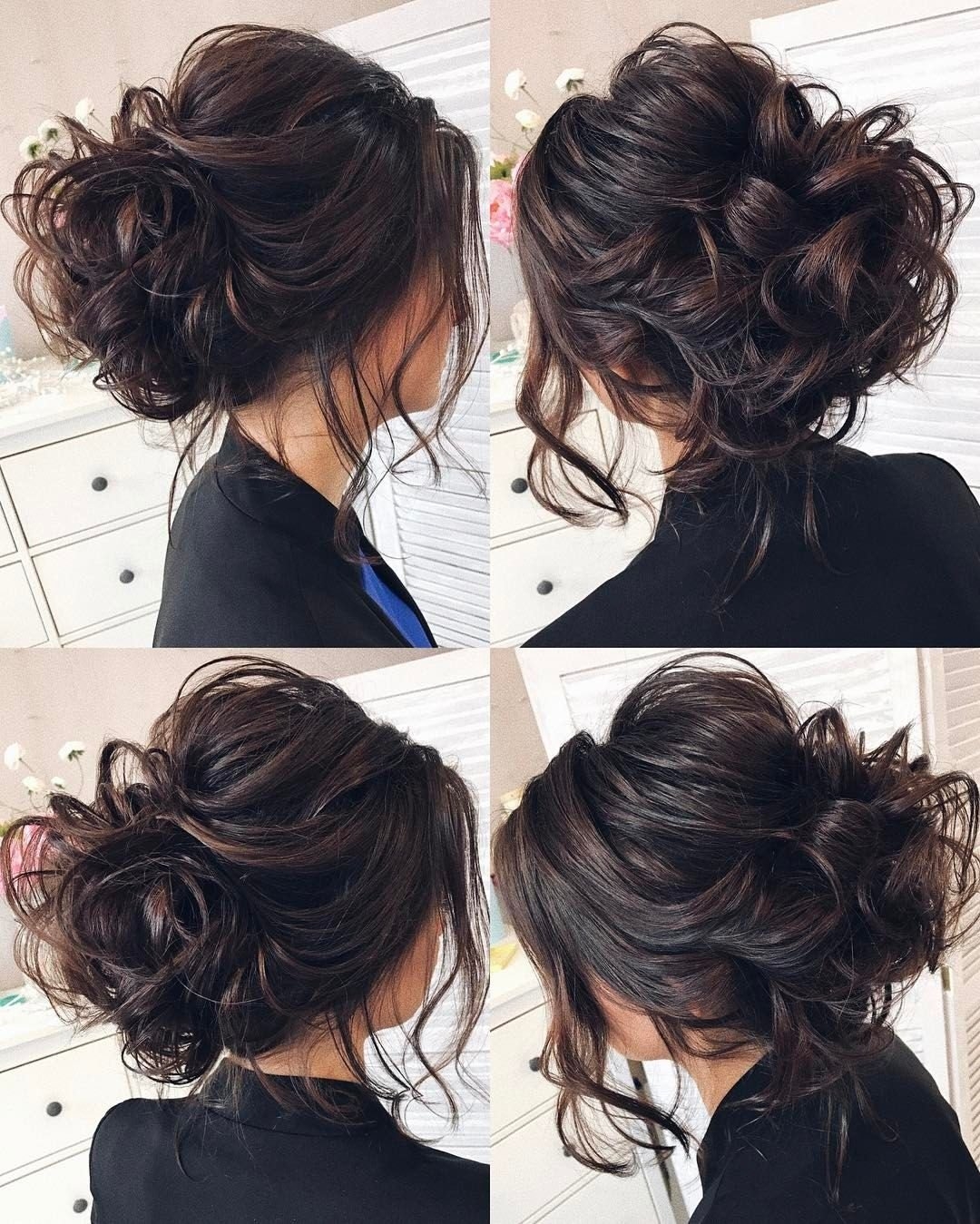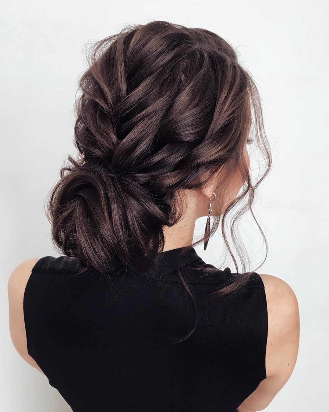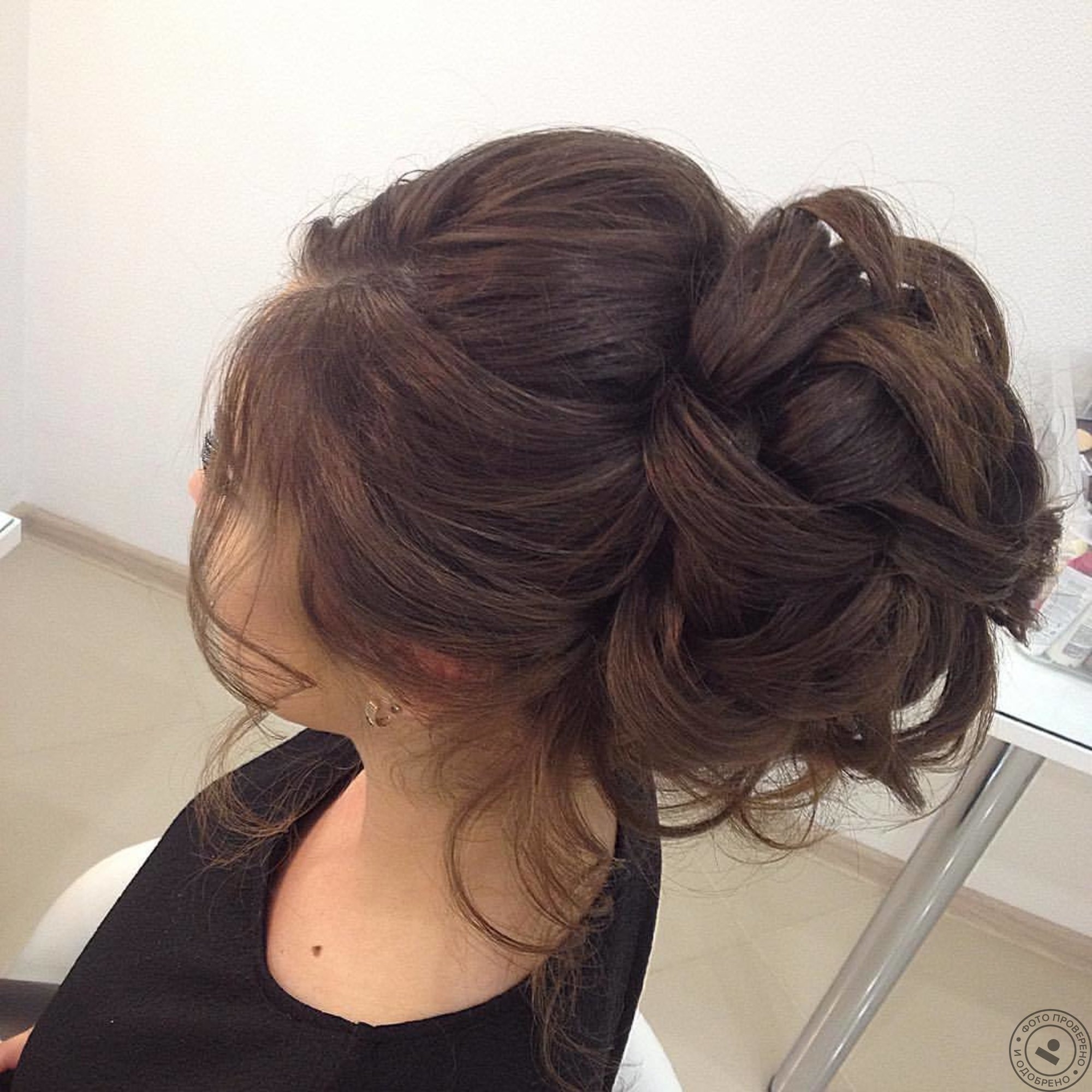 Небрежный пучок на темных волосах