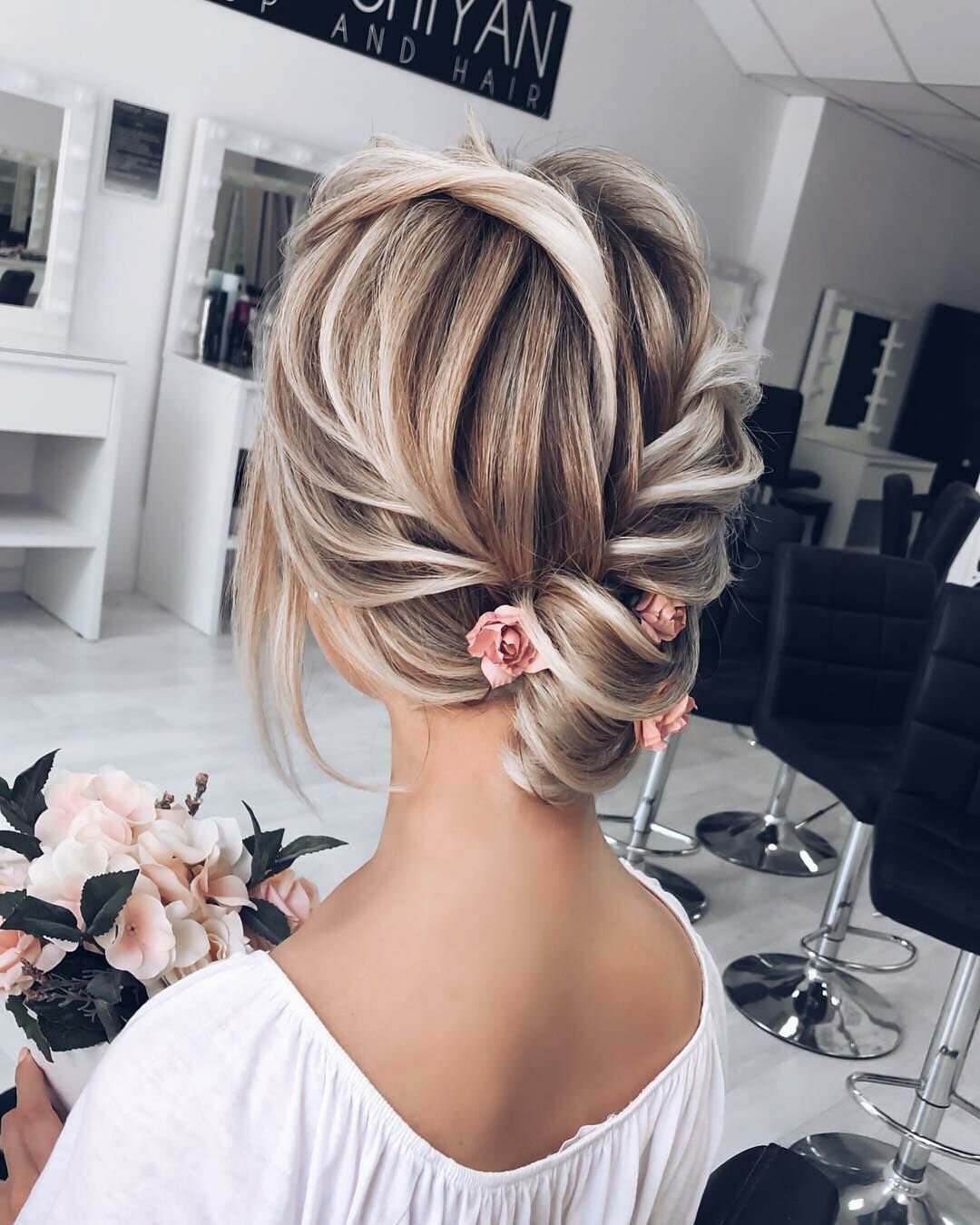 Свадебная прическа пучок с локонами