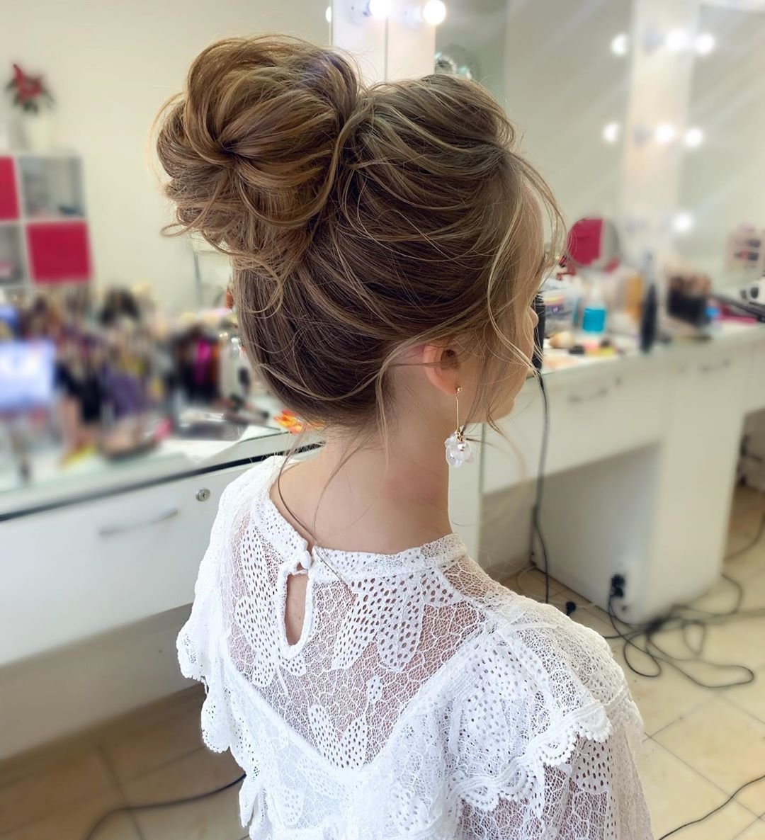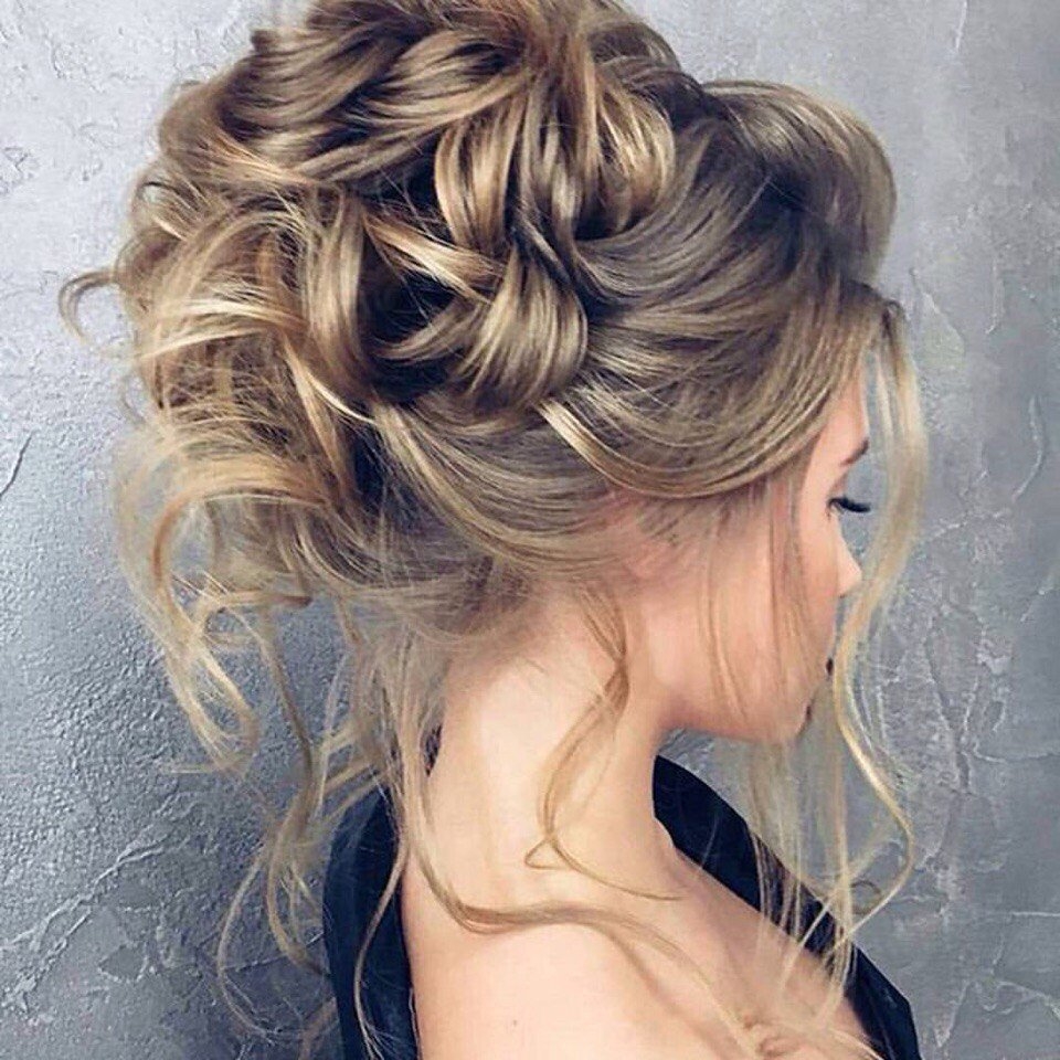 Прическа шишка с локонами