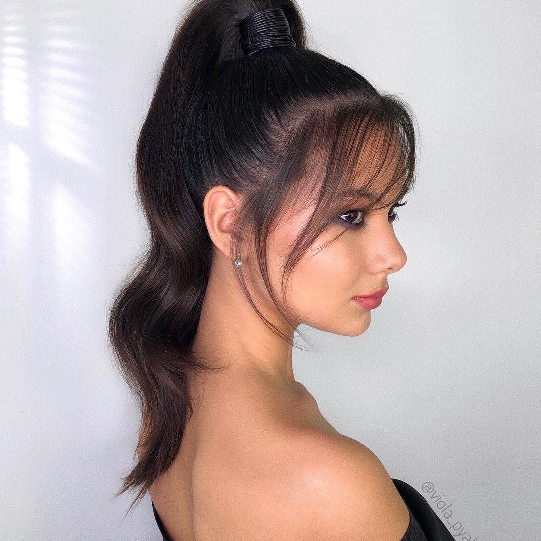 Конский хвост на средние волосы с челкой