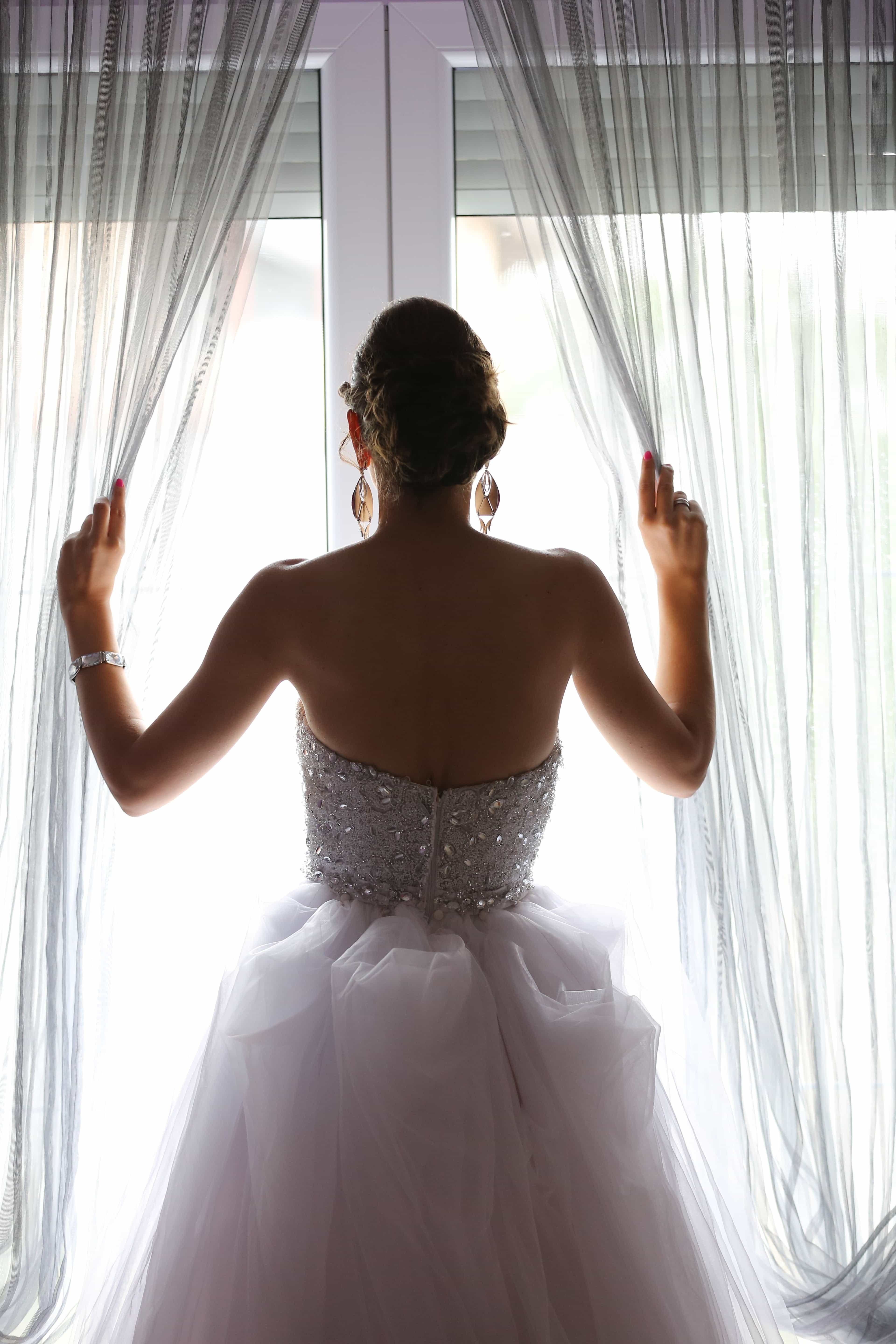 Невеста в платье у окна