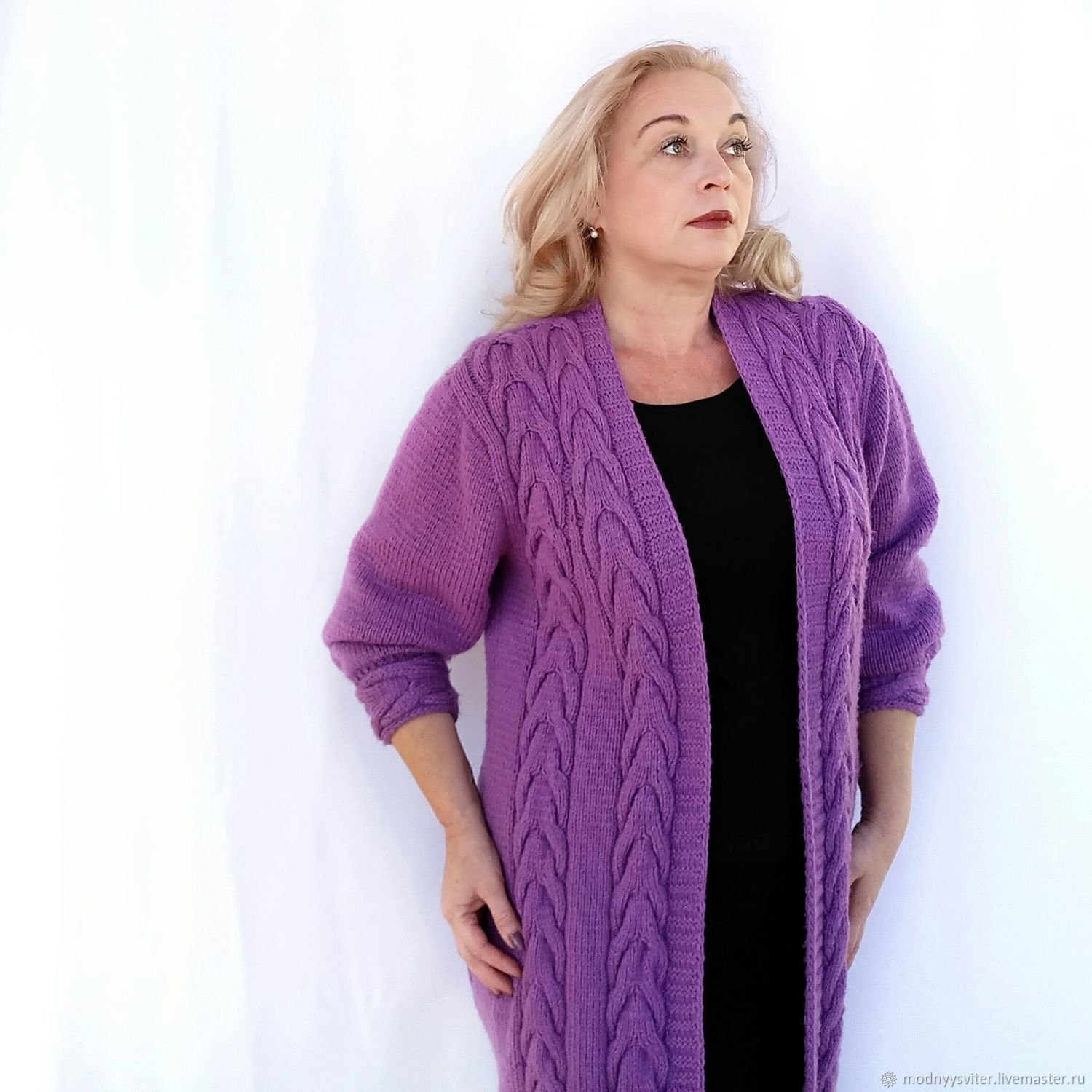 Кардиган женский вязаный спицами для полных