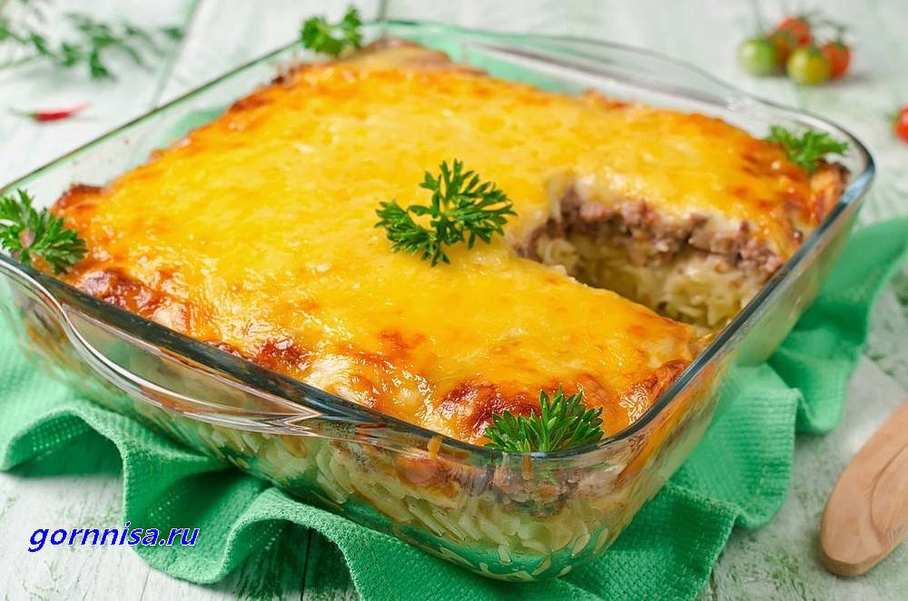 Запеканка из макарон с фаршем и сыром
